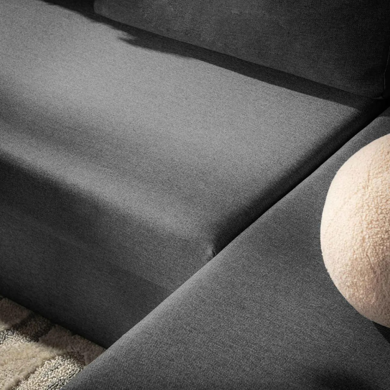 Tkanina jest przyjemna w dotyku, ma subtelnie widoczną strukturę, dzięki czemu jej barwa nie jest jednolita i sprawi, że z łatwością dopasujesz dodatki do narożnika.