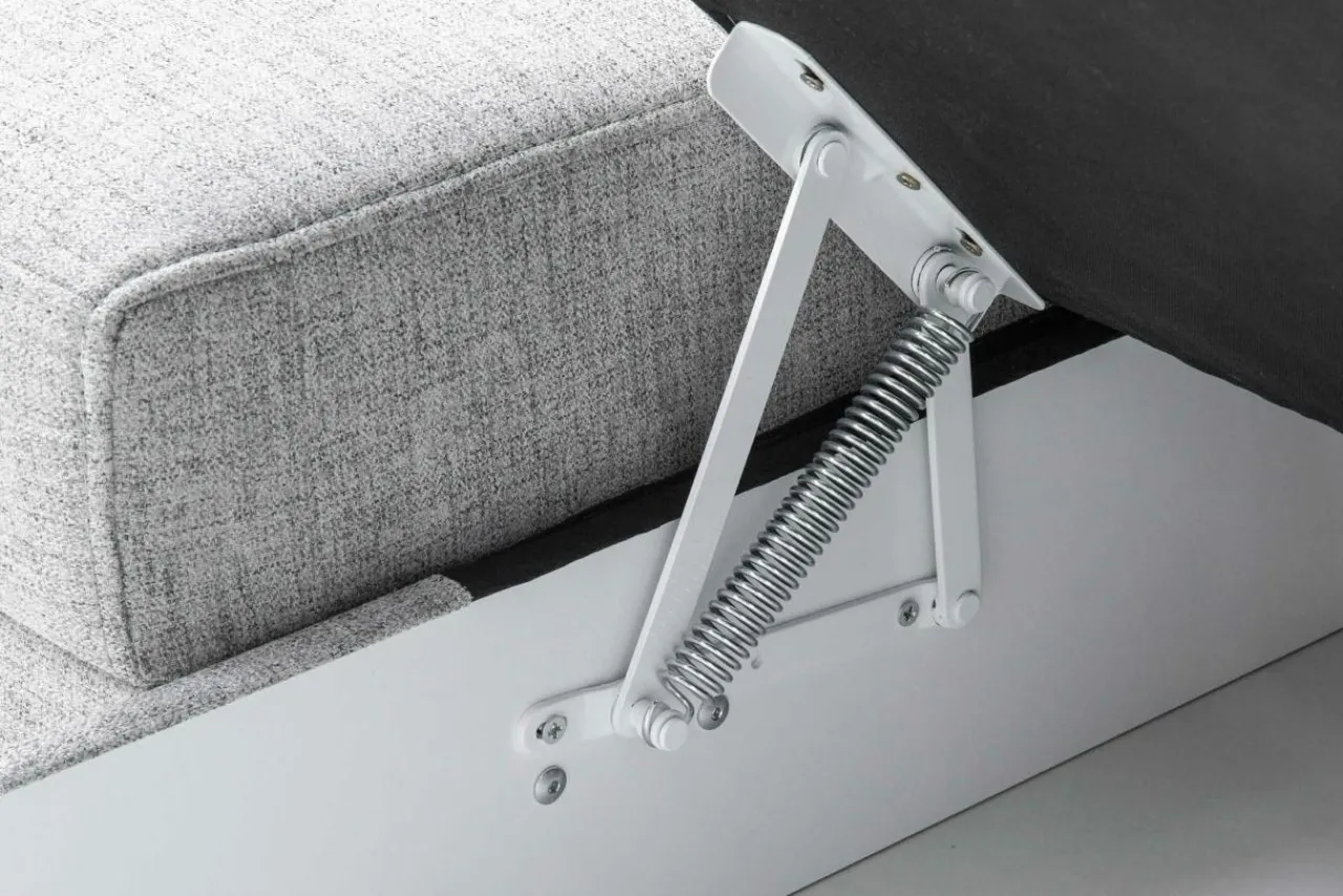 Stelaż pod siedziskiem wysuwamy i podnosimy za pomocą uchwytu. Mebel nie wymaga odsuwania od ściany. Idealny do okazjonalnego spania.