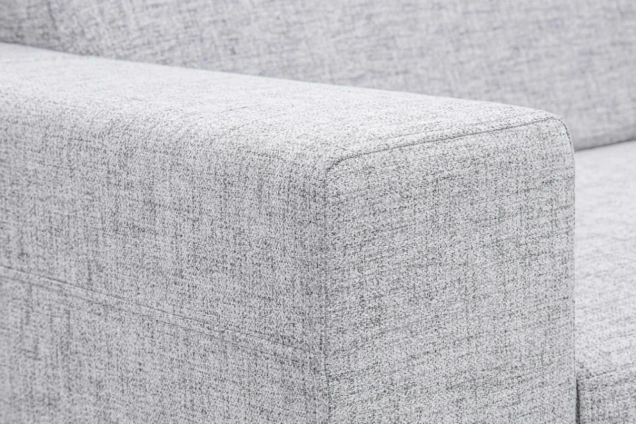 - Narożnik pokryto melanżową tkaniną z wyraźną strukturą plecionki.