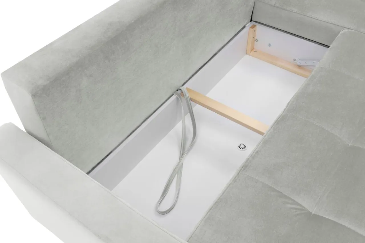 - 1 pojemnik znajduje się pod siedziskiem – to idealne miejsce na pościel, ciepły koc lub zapasowe poduszki.