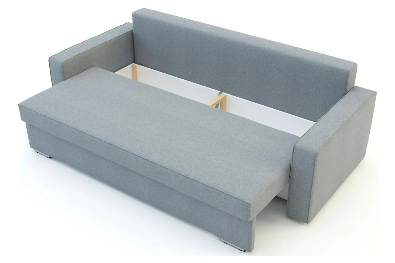 - Sofa rozkłada się za pomocą mechanizmu DL. Wystarczy unieść i wysunąć siedzisko, a w jego miejsce położyć oparcie.