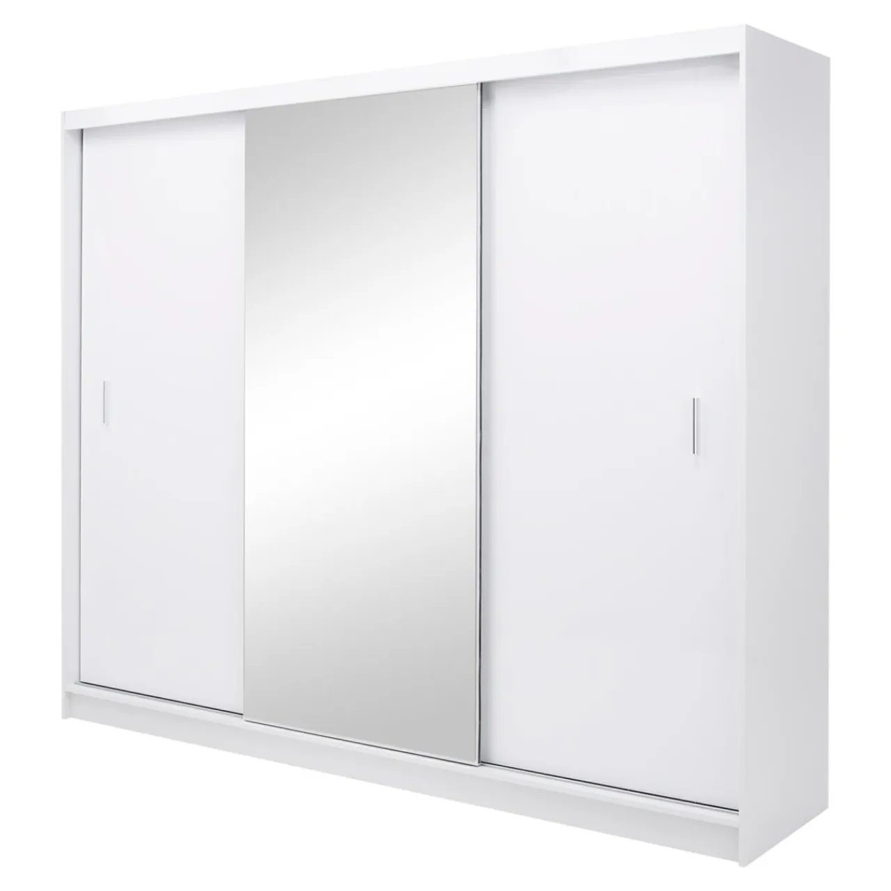 Biała szafa z lustrem MARSYLIA pomoże zorganizować zarówno wieszaki z sukienkami, koszulami czy płaszczami, a poskładane ubrania i akcesoria przechowasz w dużych wnękach.