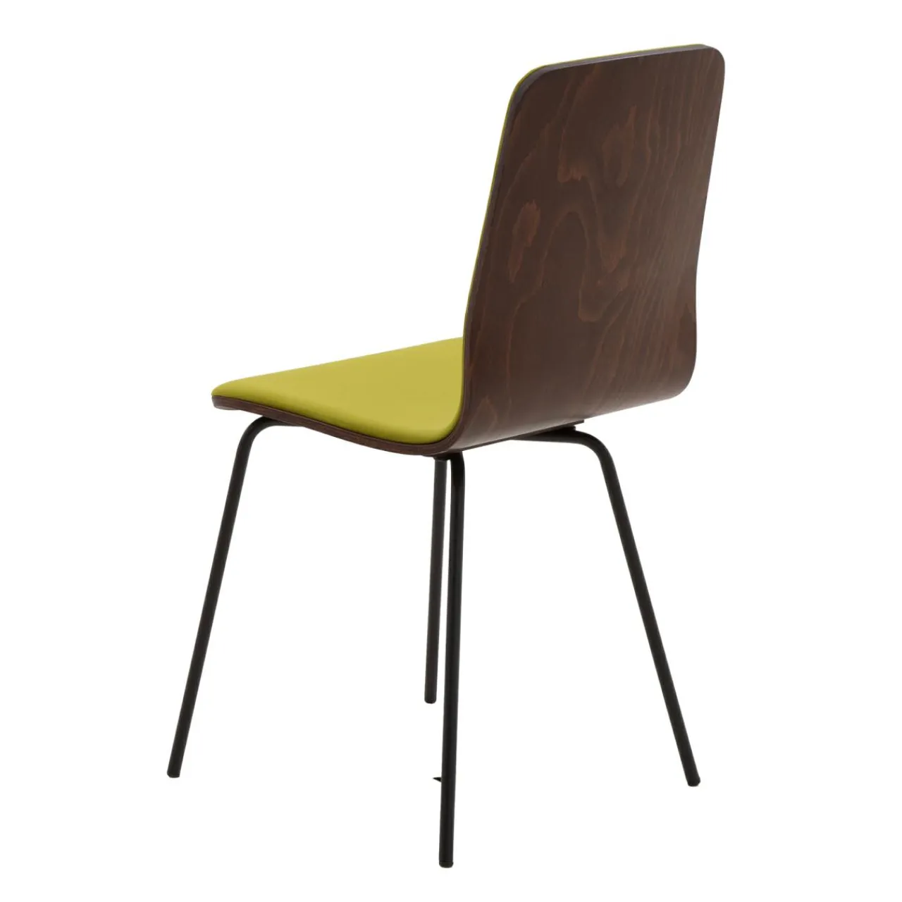 - Podstawę krzesła stanowią metalowe nogi w czarnym kolorze.