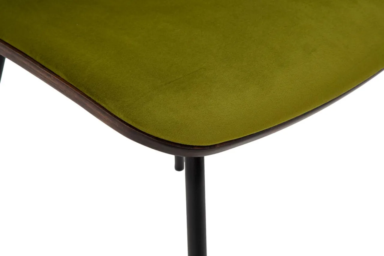 - Krzesło posiada miłą w dotyku welurową tapicerkę w kolorze zielonym.