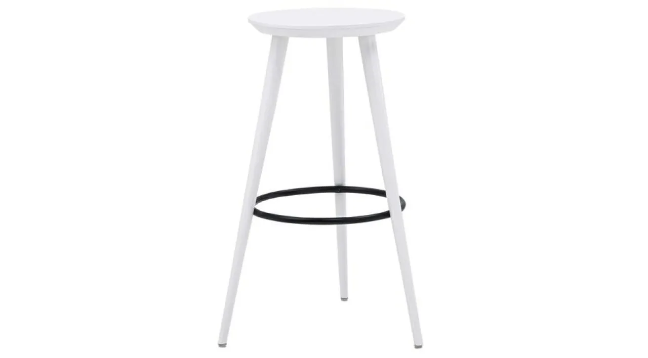 - Stelaż taboretu białego GREGOR wykonano z drewna bukowego, a okrągłe siedzisko – ze sklejki.