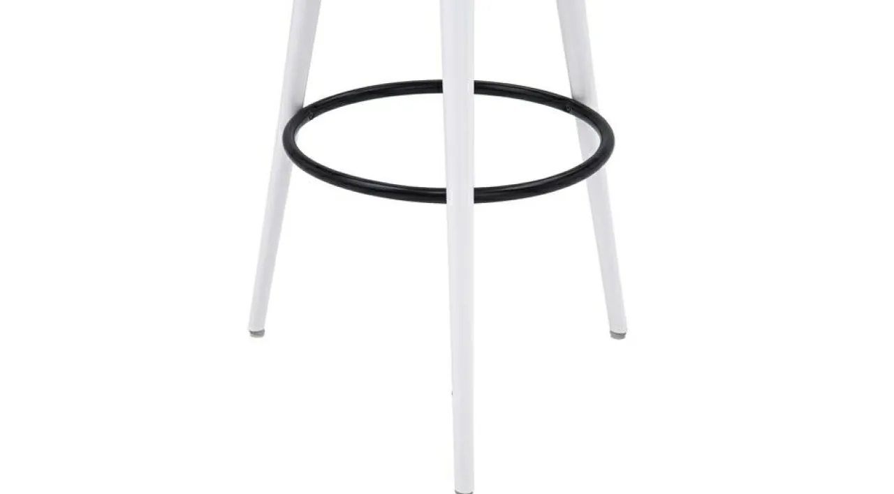 Można na nim usiąść albo coś postawić. Taboret biały GREGOR ma 75 cm wysokości więc idealnie sprawdzi się przy wysokim blacie. Siedząc na nim, możesz oprzeć stopy o okrągły element w podstawie taboretu.
