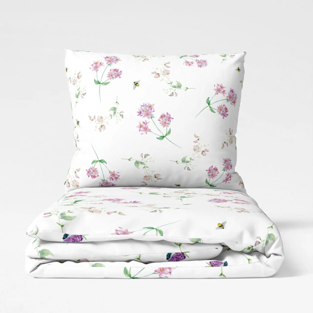 Pościel bawełniana z motywem dzikich łąk wprowadza do sypialni świeżość natury. Wzór przedstawiający delikatne polne kwiaty nadają całości subtelny, rustykalny charakter. Miękka, oddychająca tkanina jest odpowiednia nawet dla najbardziej wrażliwej skóry.