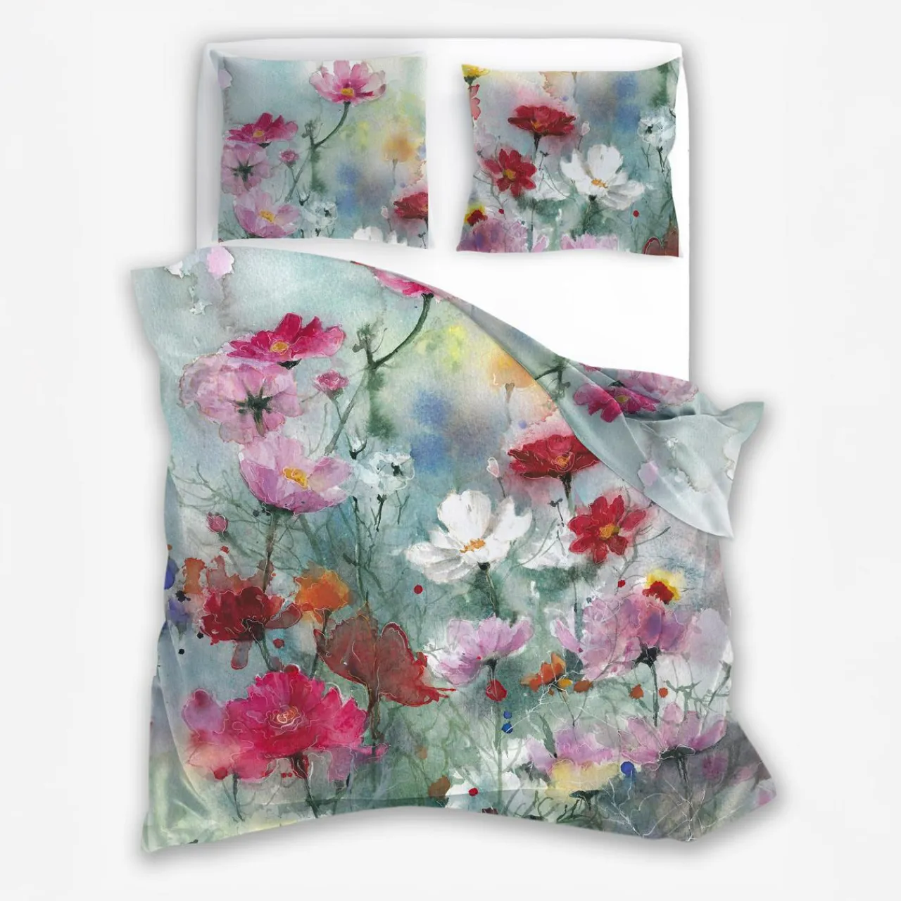 - Wyjątkowy design sprawia, że pościel wygląda jak wykonany akwarelami obraz. Eteryczne, przenikające się plamy barw oraz bogactwo kolorów czynią z kompletu wyjątkową ozdobę, która nada Twojej sypialni głębi i romantycznej elegancji.