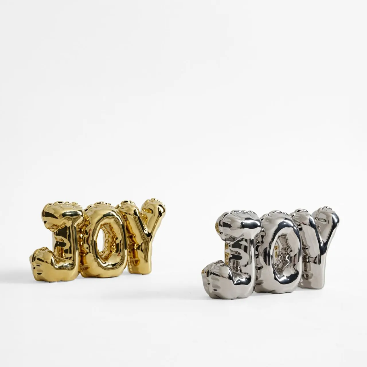 Dekoracja napis JOY jest nietuzinkowym dodatkiem do Twojego salonu lub przedpokoju. Wygląd przypominający złoty balon wyróżni się i przyciągnie uwagę gości.