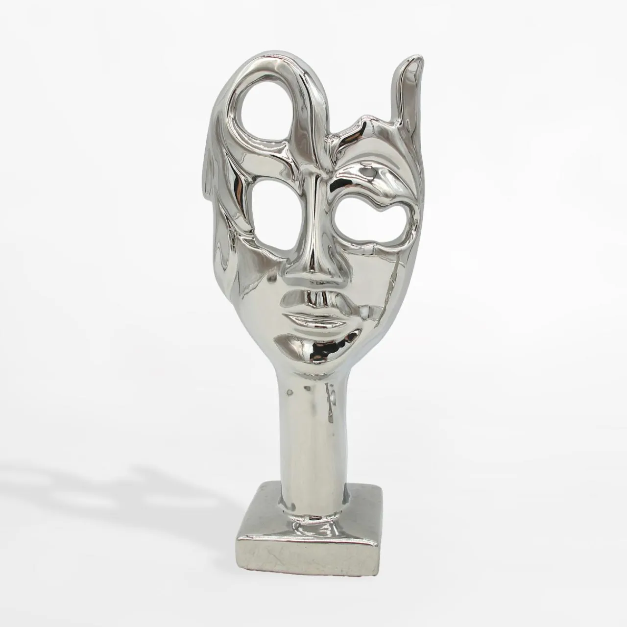 Figurka dekoracyjna maski uświetni wnętrze minimalistycznym designem. Srebrny kolor dodaje elegancji i wyznacza wyrafinowany kierunek aranżacji. Figurka ozdobi komodę lub witrynę.