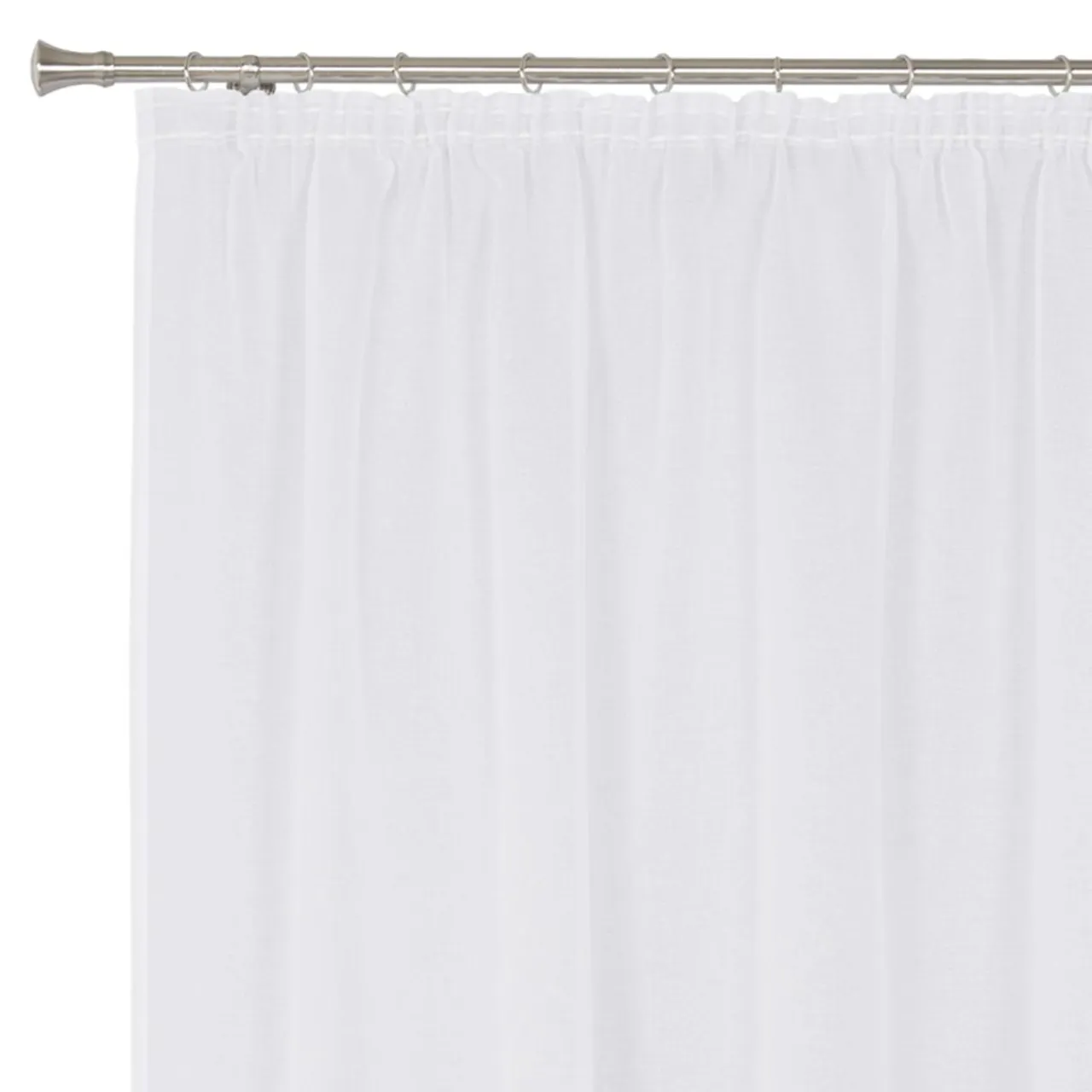 Ponad to firana jest naszyta na taśmę marszczącą, możesz dopasować jej szerokość do szerokości okna – tworząc własną aranżację.