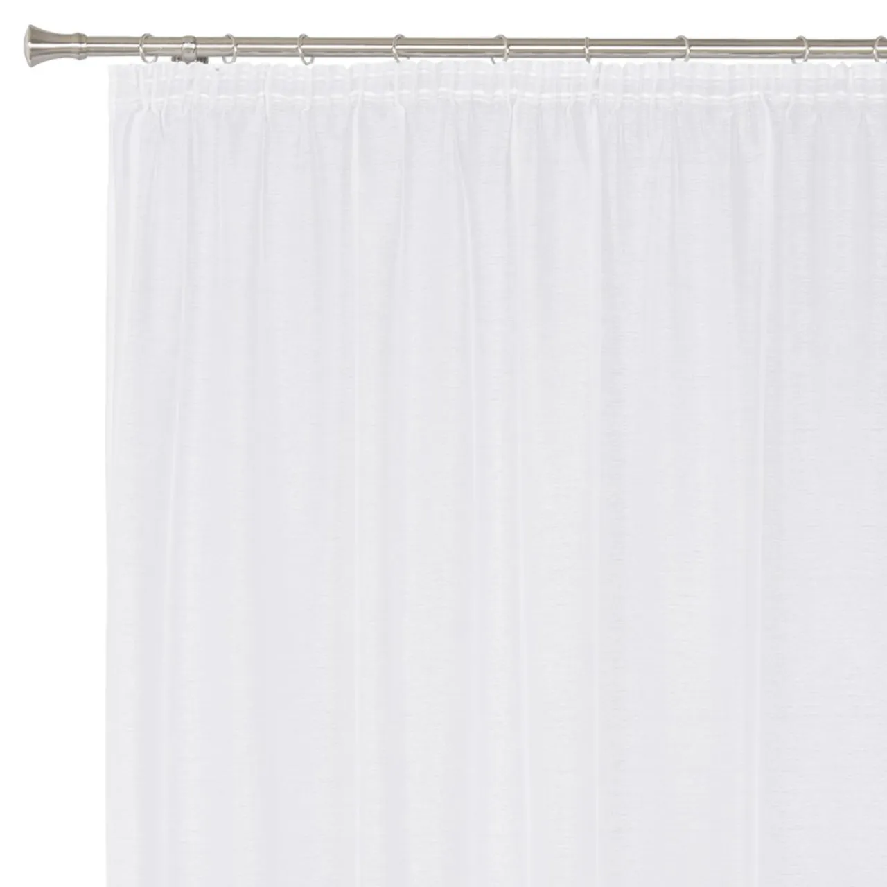 Firana jest naszyta na taśmę marszczącą, więc bez problemu dopasujesz jej szerokość do swojego okna – tworząc ozdobne plisy.