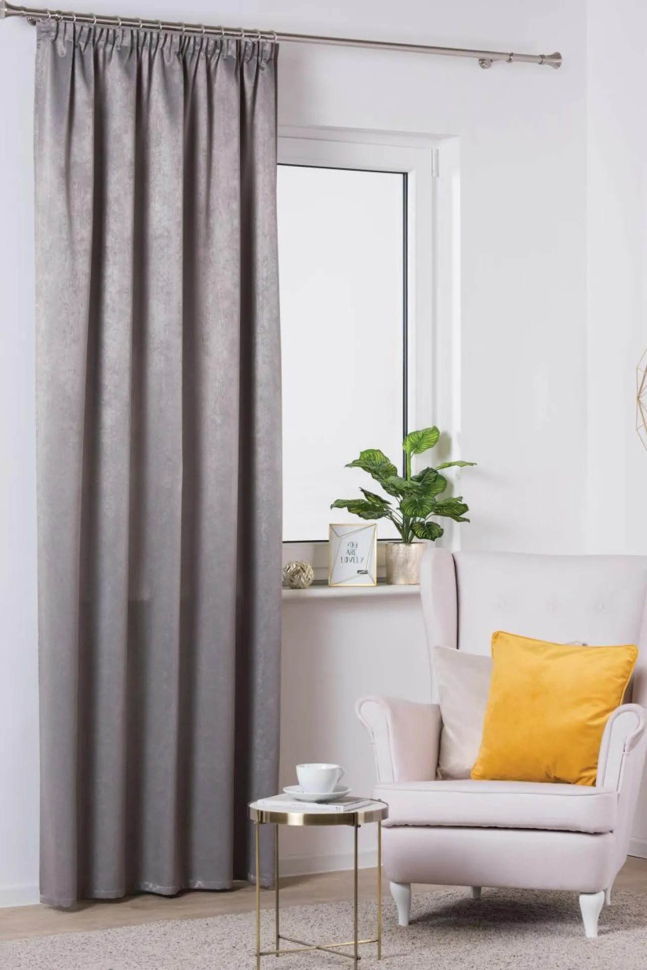 Prosta, jednokolorowa zasłona to doskonałe uzupełnienie aranżacji pomieszczenia w stylu skandynawskim i klasycznym. Można ją ożywić wykorzystując dekoracyjny upinacz.