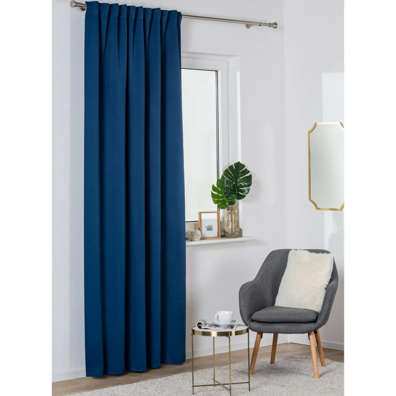 Zasłona ECLIPSE jest uszyta z granatowej, gładkiej tkaniny zaciemniającej typu BLOCKOUT.