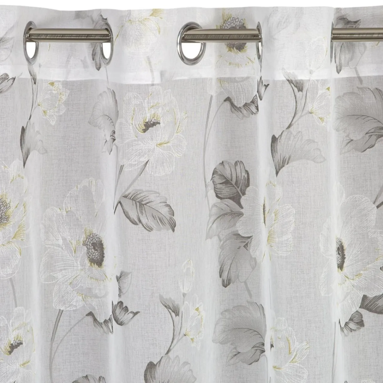 Firana do salonu BESSY ozdobi wnętrze w stylu romantycznym lub angielskim. Białe kwiaty na tle jasnej i miękkiej w dotyku tkaniny dodadzą aranżacji delikatności.