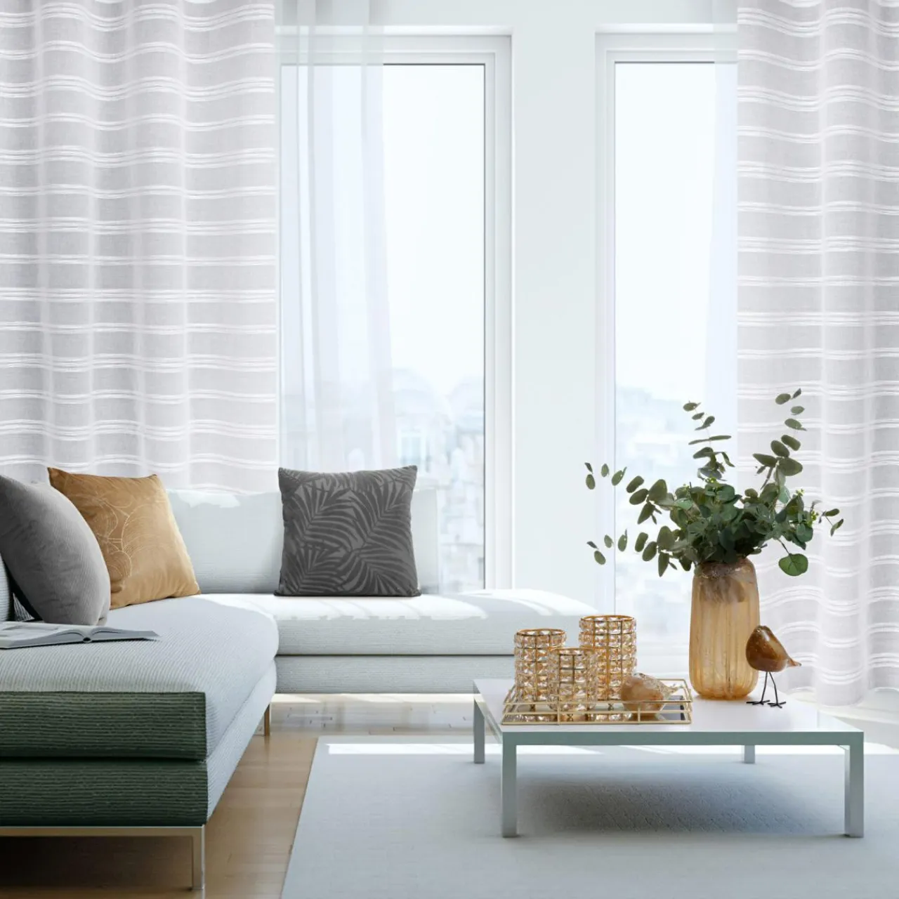 Firana na przelotkach DOLY podkreśli prostą i naturalną aranżację.