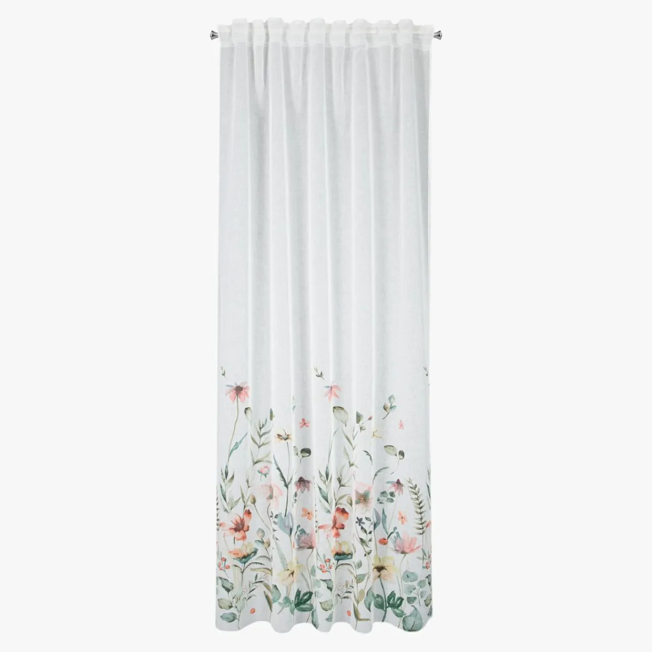 Dodaj wnętrzu lekkości i letniego nastroju dzięki zasłonie z kolekcji DOLLY – na białym tle nadruk malowanych pędzlem kwiatów skojarzy się z beztroskim, słonecznym dniem.