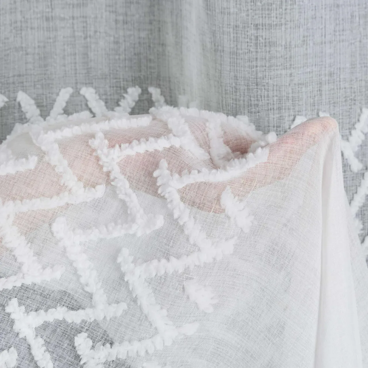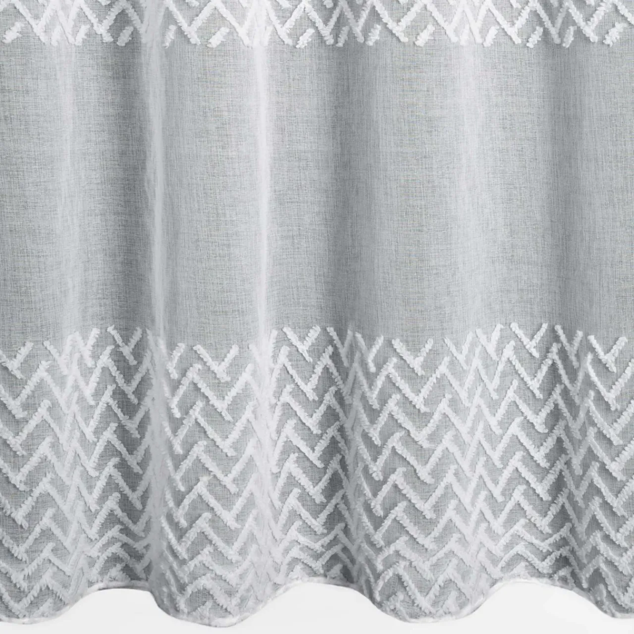 Zwiewna zasłona na przelotkach ESTERI z dekoracyjnym wzorem nada wnętrzu lekkości i świeżości.