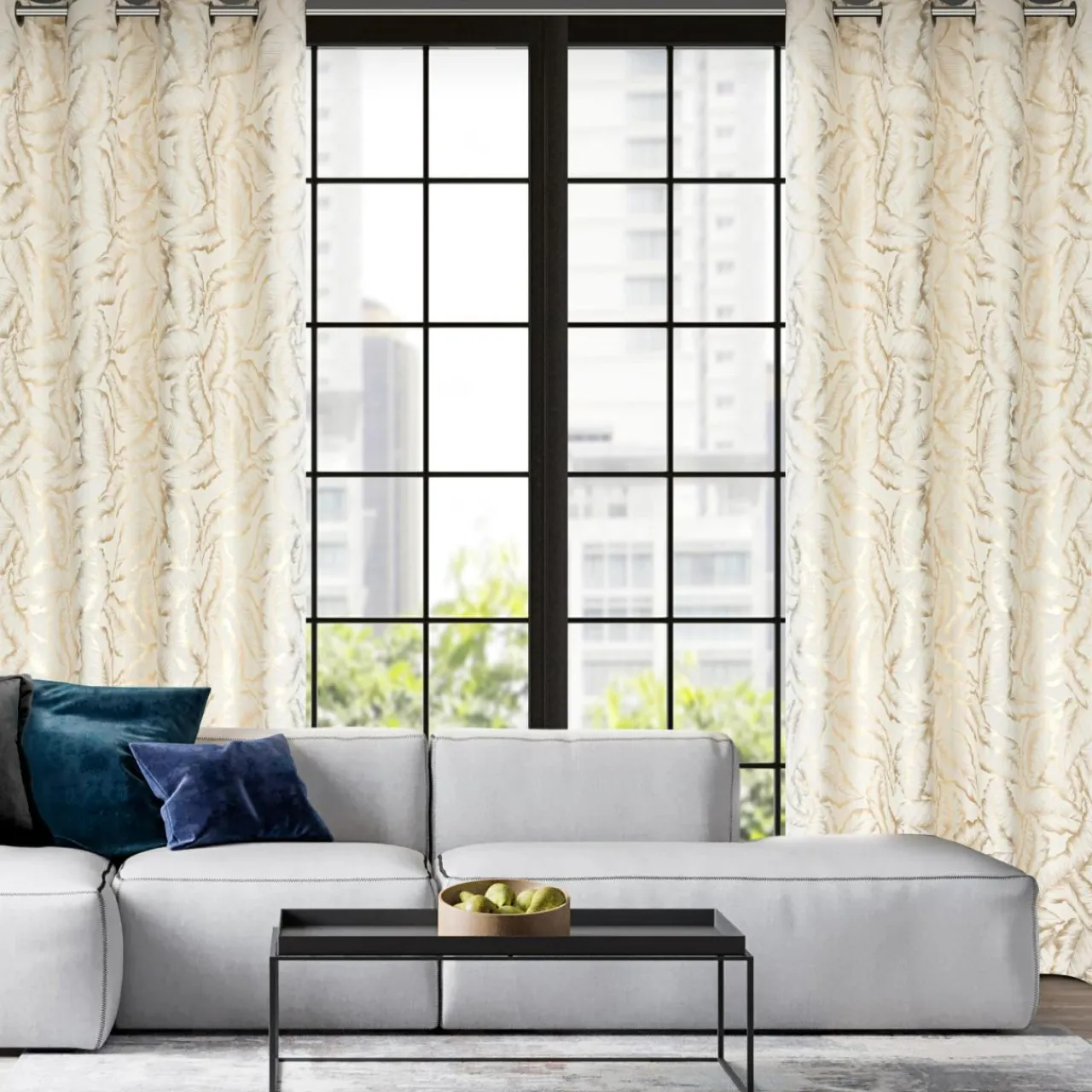 Kremowa zasłona na przelotkach MILENA tchnie do wnętrza powiew tropikalnego lata w stylu glamour.
