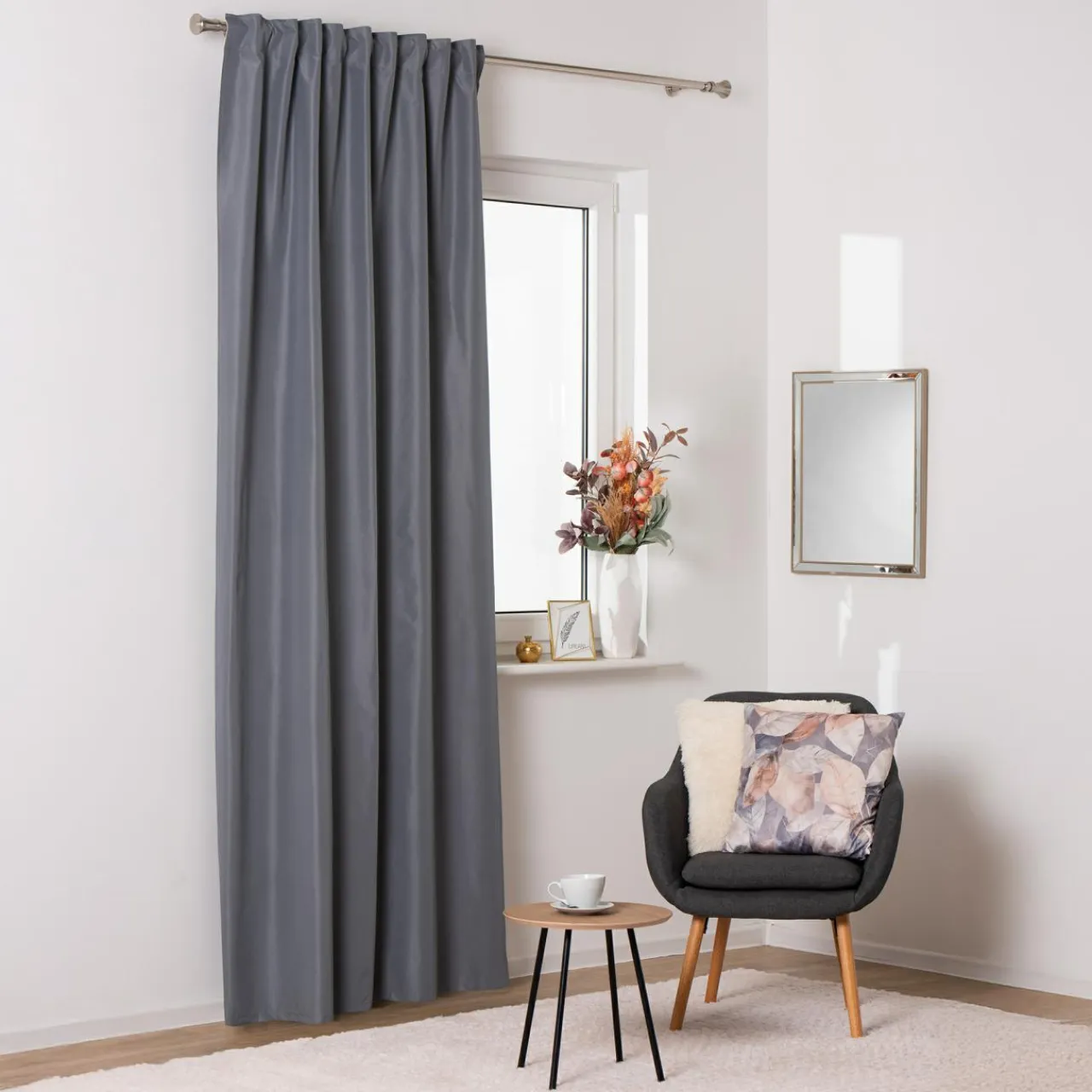 - Szary kolor jest uniwersalny – dopasujesz go do różnych aranżacyjnych pomysłów.