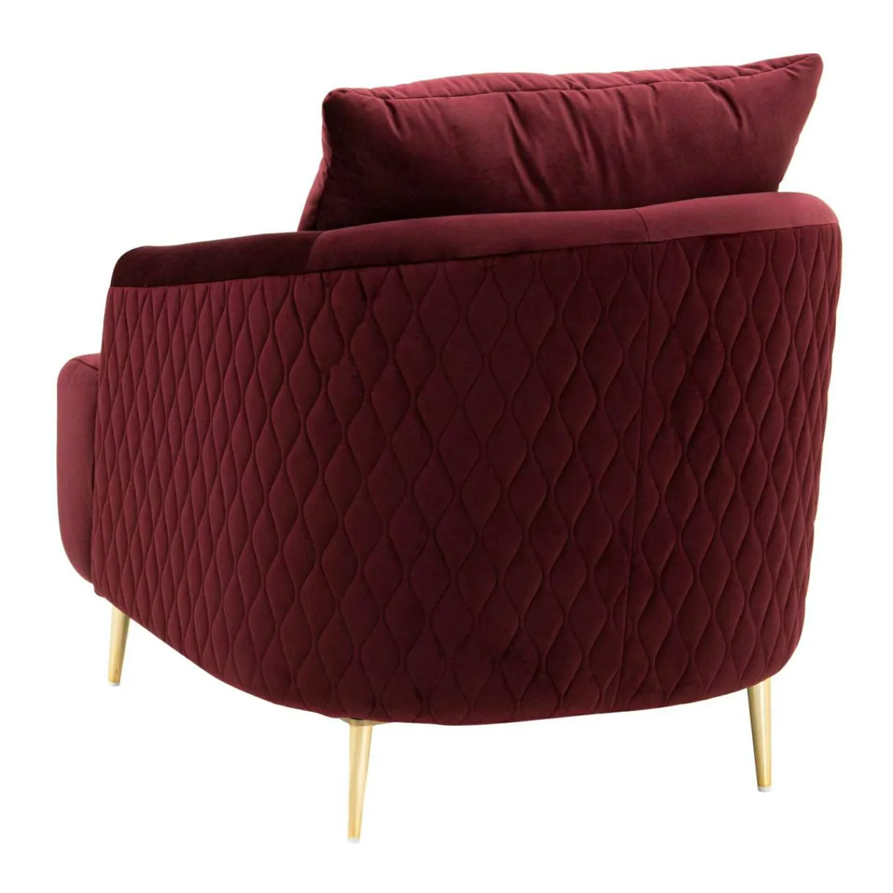 - Boki fotela i ozdobna poduszka posiadają ten sam kolor tapicerki, urozmaicono je natomiast dekoracyjnym pikowaniem.