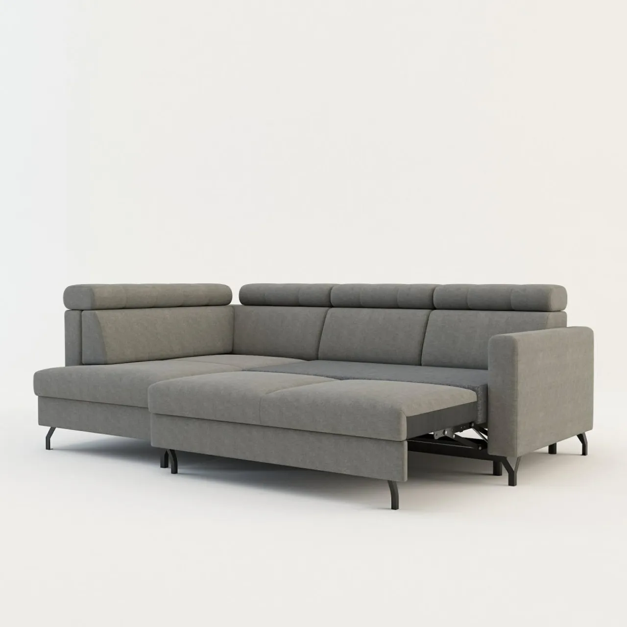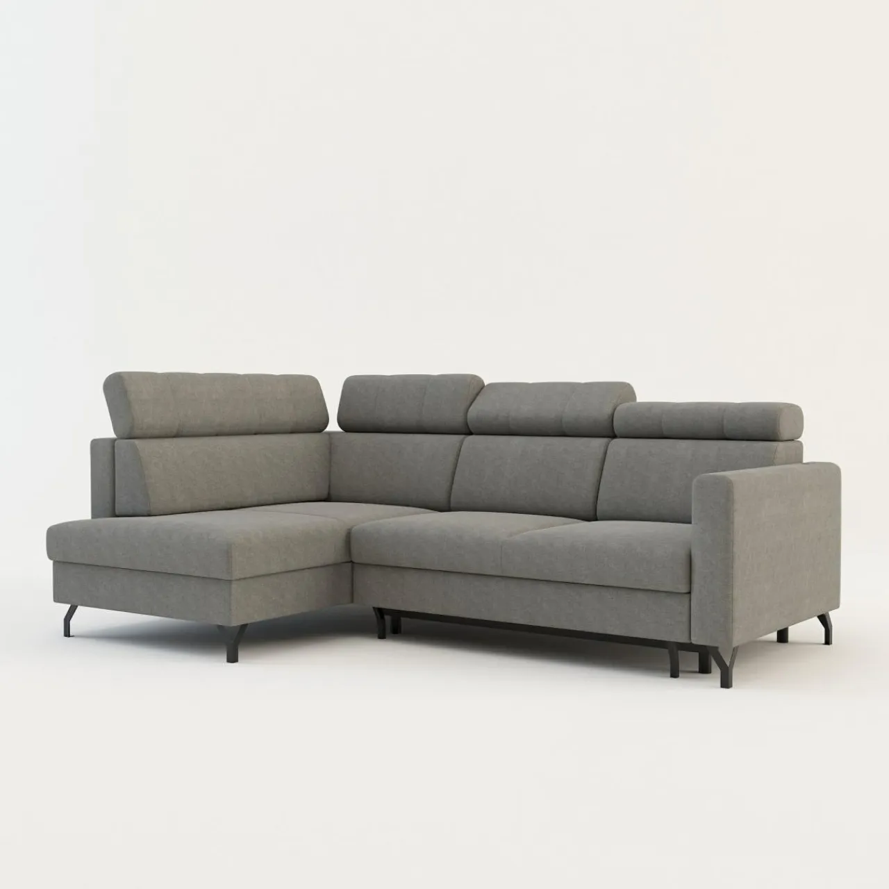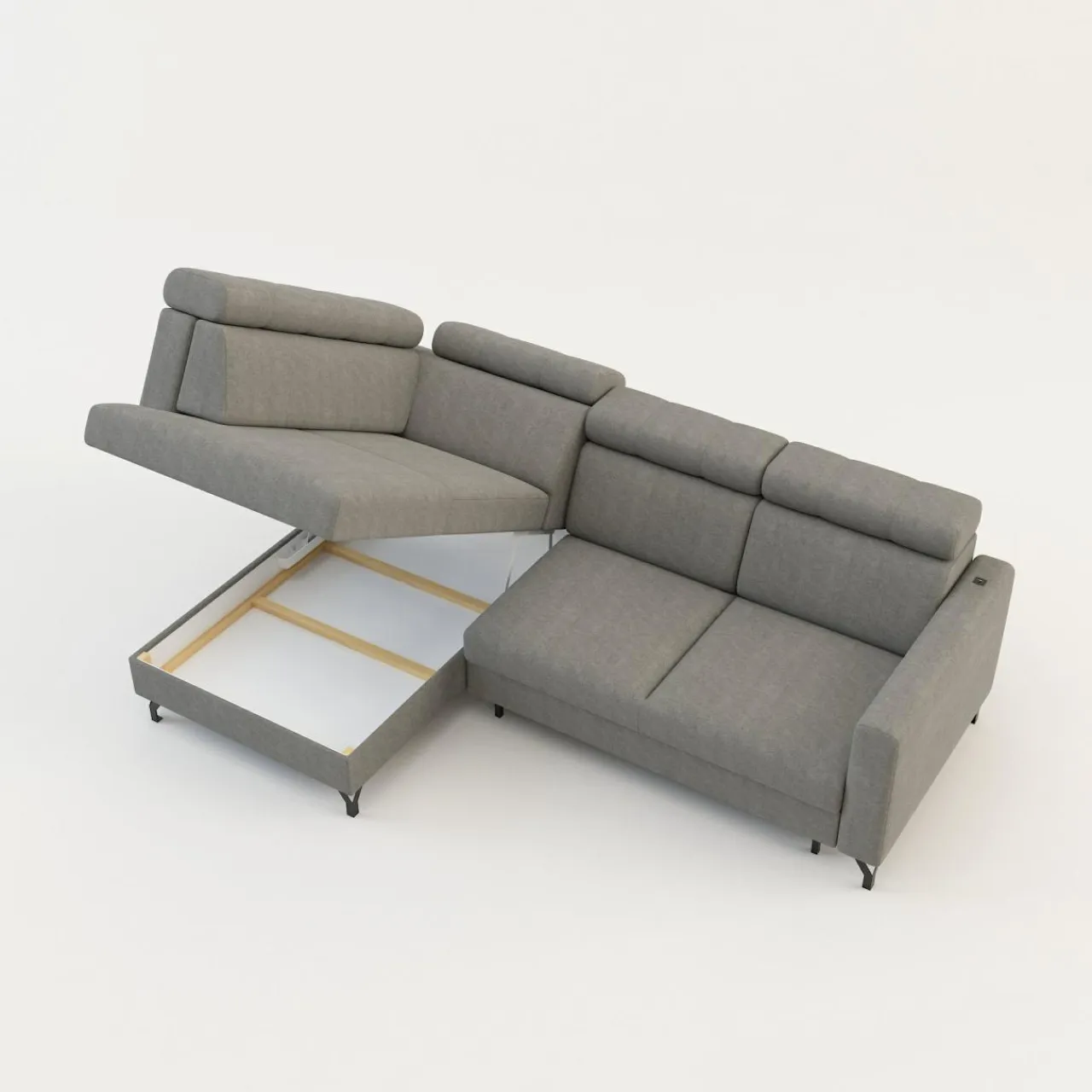 - Pojemnik na pościel w leżance zapewni przestrzeń na pościel, koce i inne domowe tekstylia. Możesz z niego korzystać, nawet jeśli narożnik będzie rozłożony.