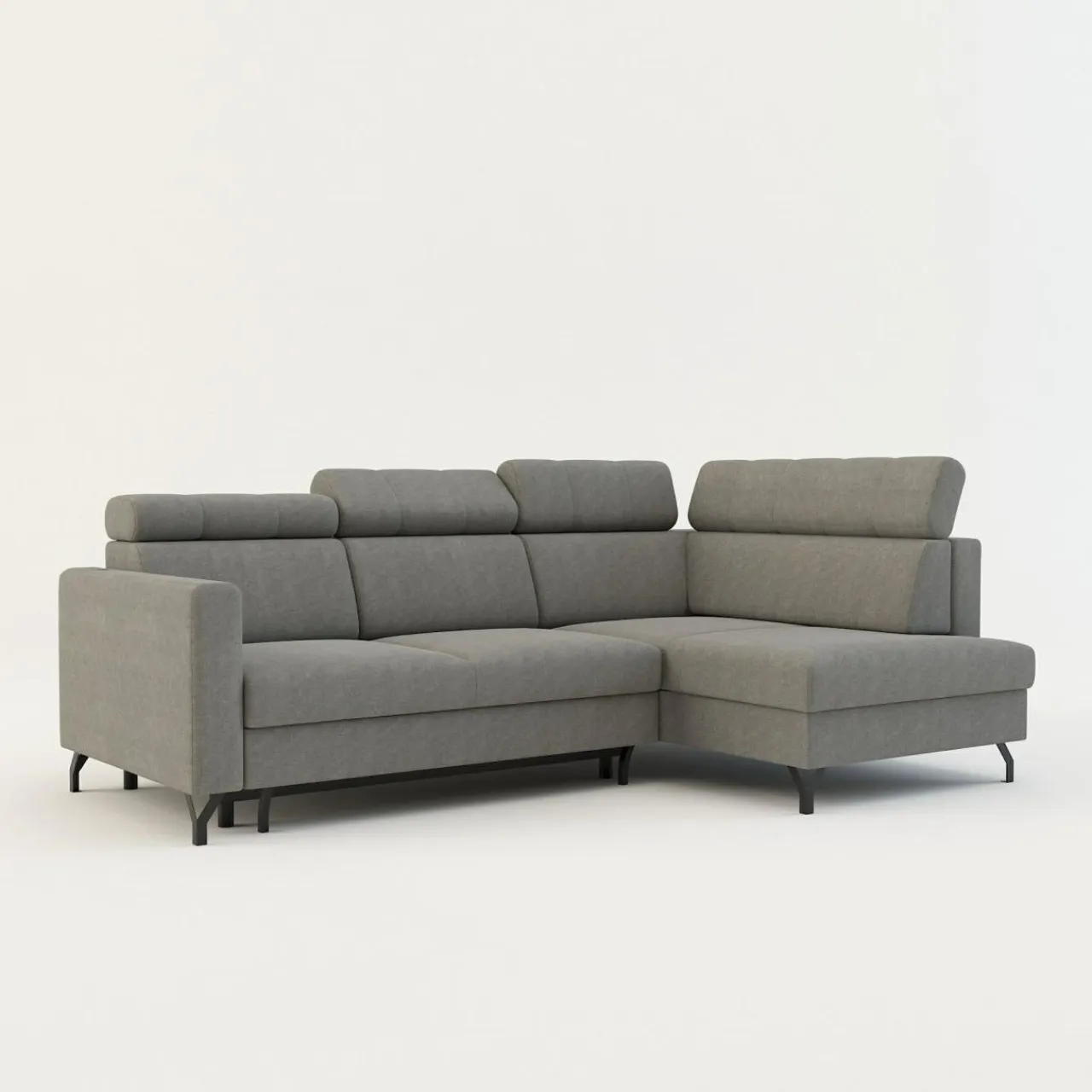 - Pojemnik na pościel w leżance zapewni przestrzeń na pościel, koce i inne domowe tekstylia. Możesz z niego korzystać, nawet jeśli narożnik będzie rozłożony.