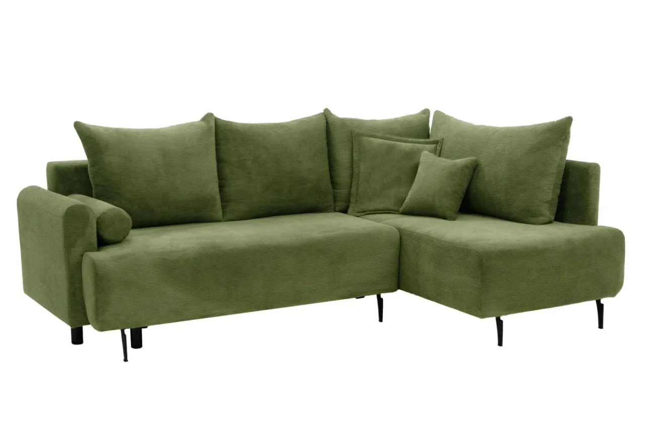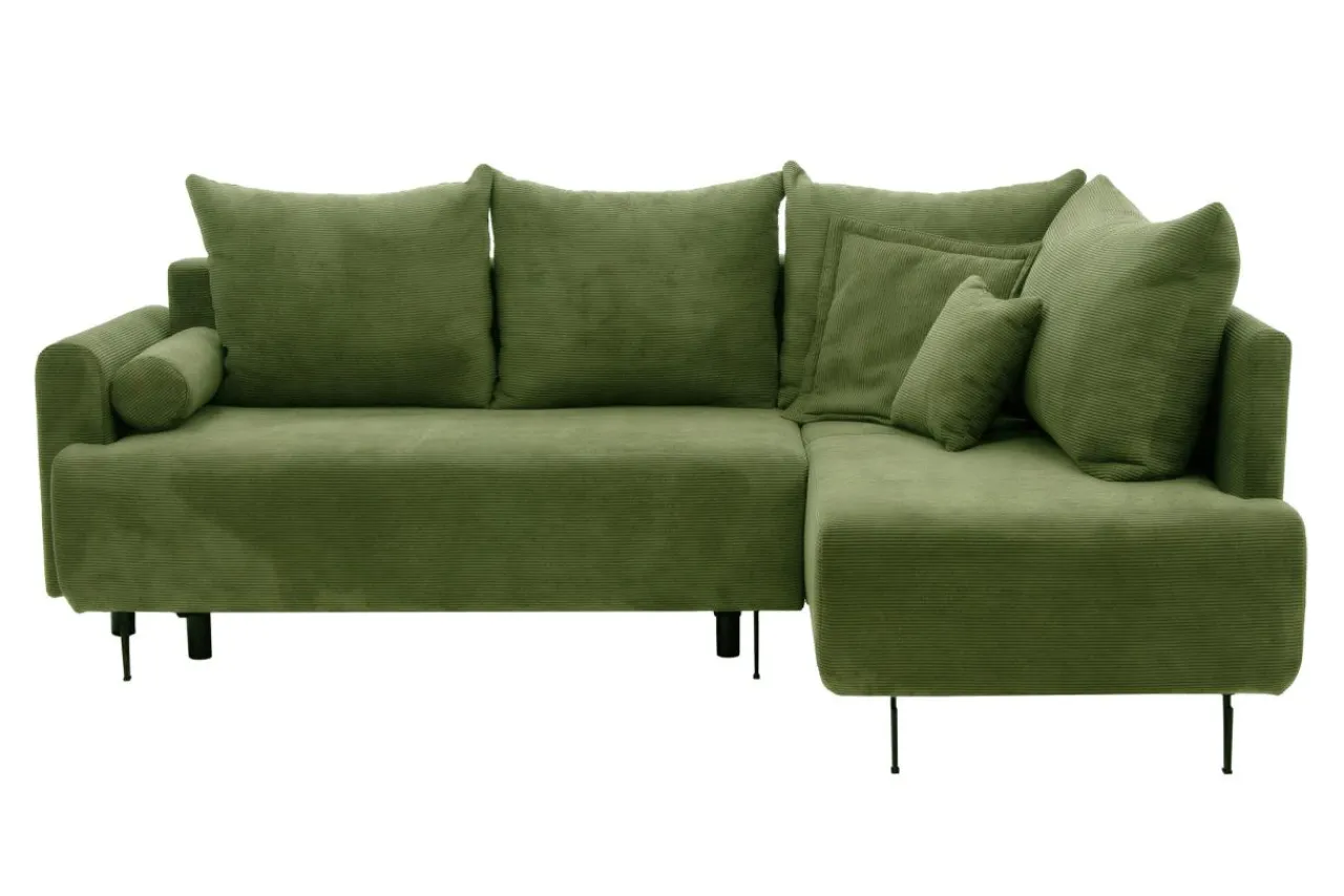 - Do obicia narożnika użyto mięsistej, sztruksowej tkaniny CAPRI w ciemnozielonym kolorze, którą docenisz za ciekawy wygląd i miękkość.