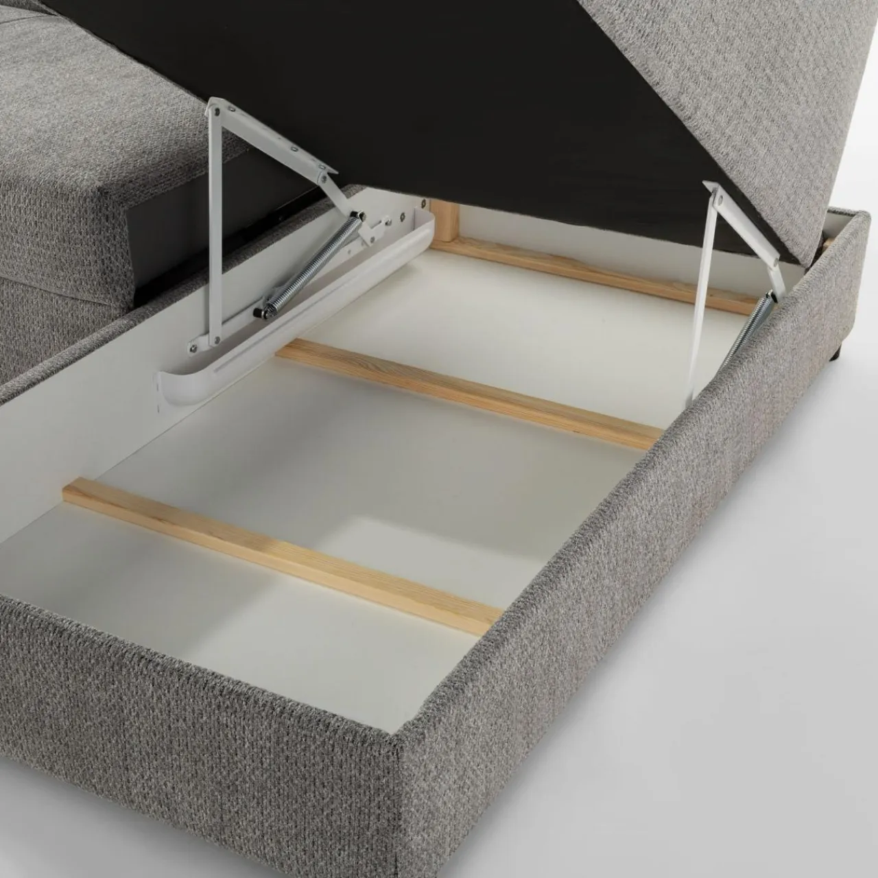 - Pojemnik w leżance będzie wygodnym miejscem na pościel lub inne domowe tekstylia. Będziesz mieć do niego dostęp, nawet jeśli narożnik będzie rozłożony.