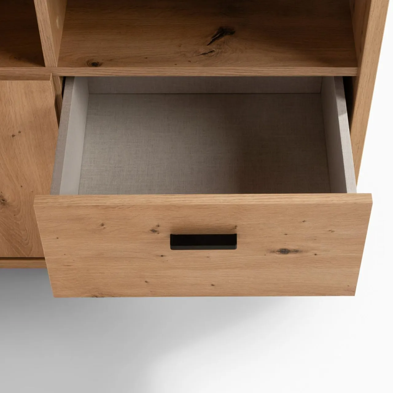 - Szafka pod biurkiem posiada otwarte półki, szuflady i szafkę, które pomogą zachować porządek przy biurku.