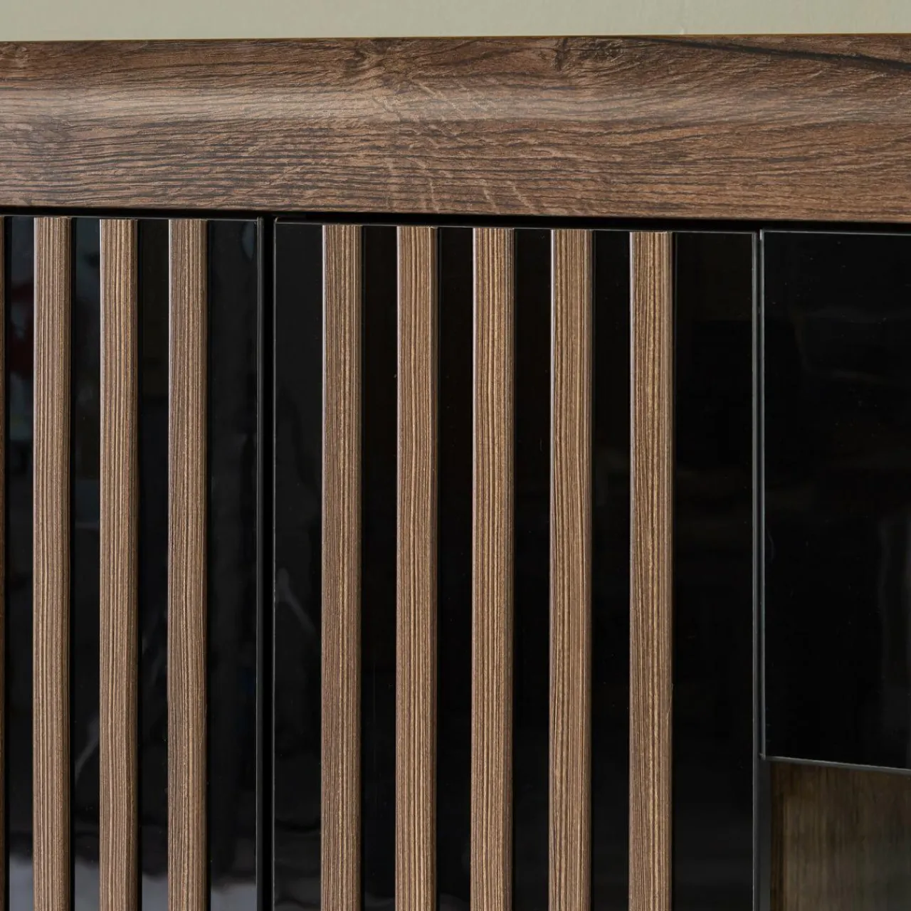 Dzięki zastosowaniu lameli na froncie, komoda SAVONA podkreśla nietuzinkowy charakter salonu, jadalni, pokoju dziennego czy przestronnego przedpokoju.