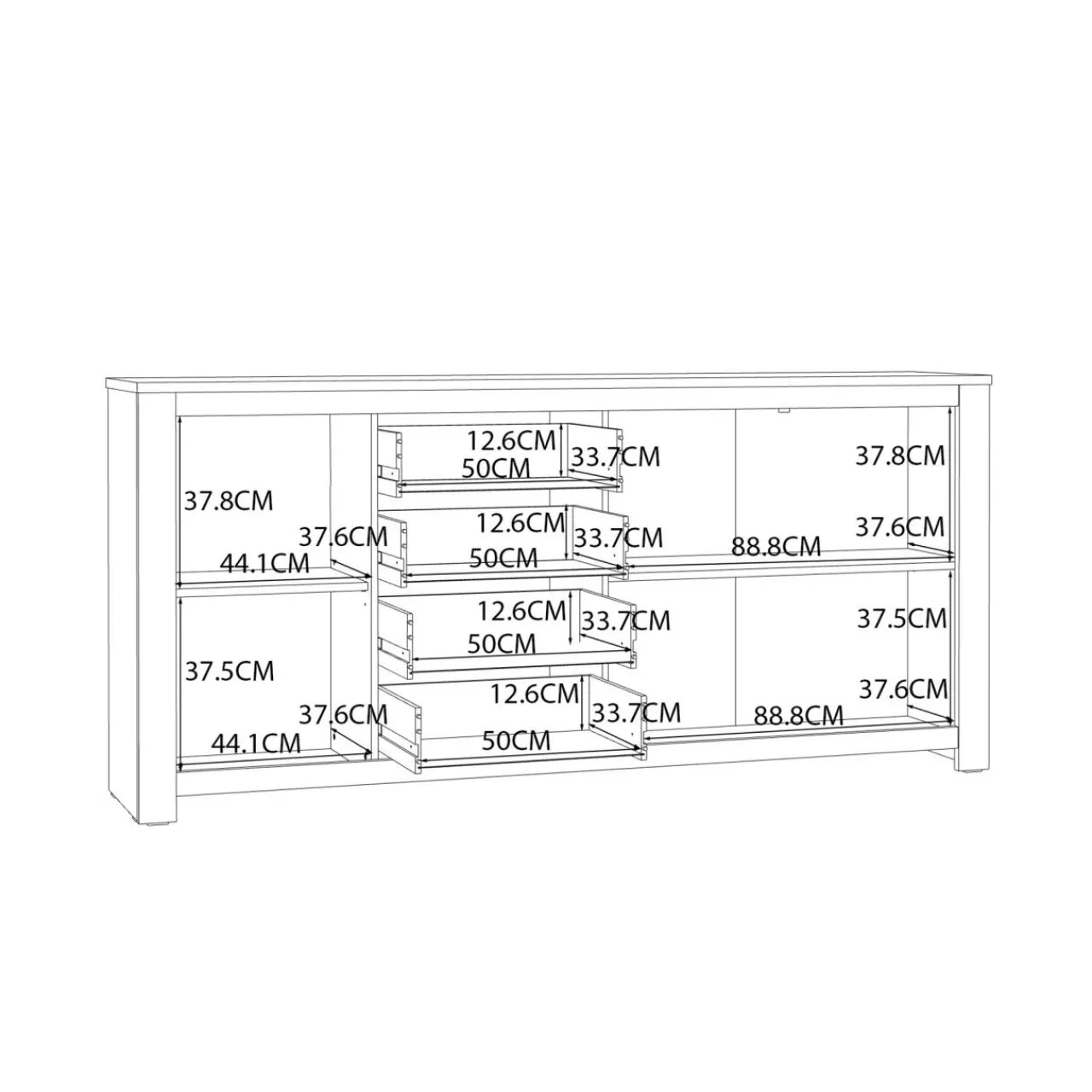 Wnętrze komody umożliwi Ci rozplanowanie garderoby oraz uporządkowanie mniej reprezentacyjnych drobiazgów. Możesz w niej trzymać ubrania, zastawę stołową czy dokumenty.