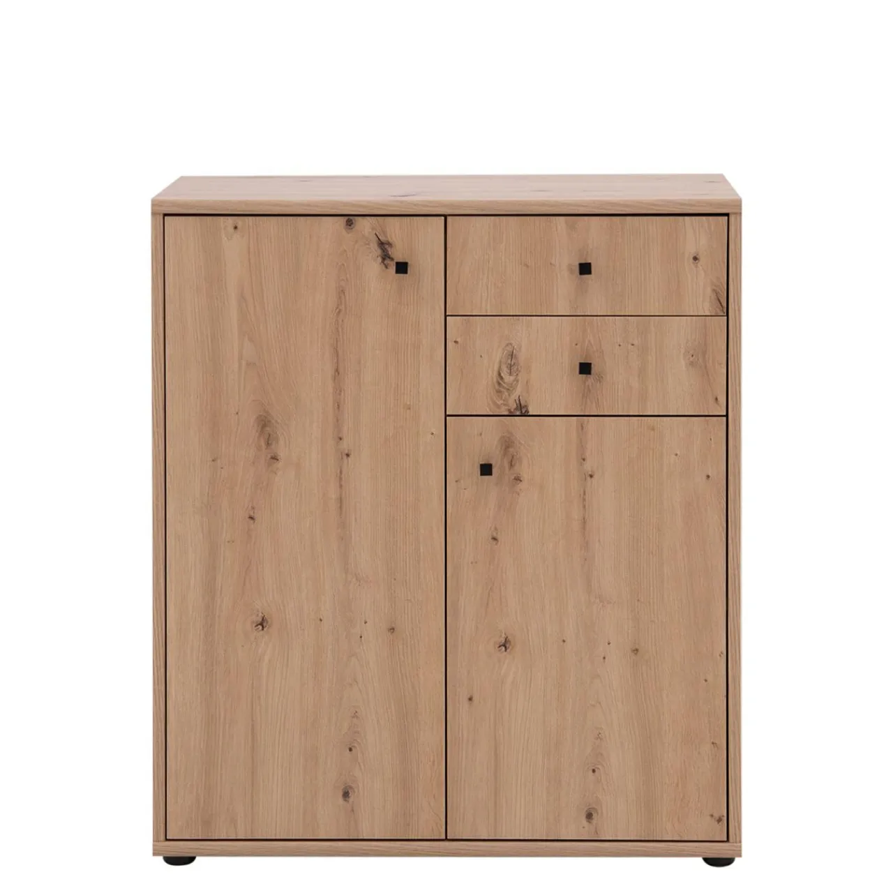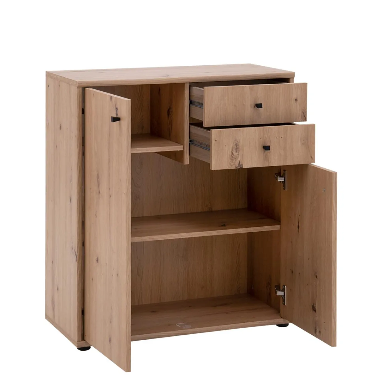 - Kolorystyka dąb artisan umożliwia zestawienie komody z meblami w stylu rustykalnym oraz industrialnym. Ładnie komponuje się również z meblami osadzonymi na czarnych profilach.