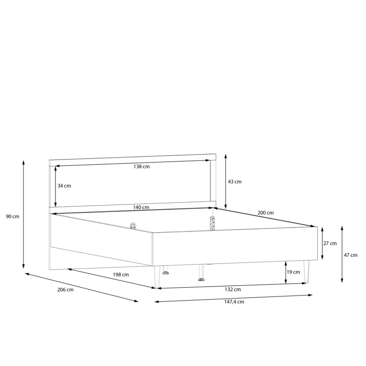 W zależności od wysokości ramy łóżka oraz wysokości wybranego materaca należy dostosować odpowiedni stelaż.