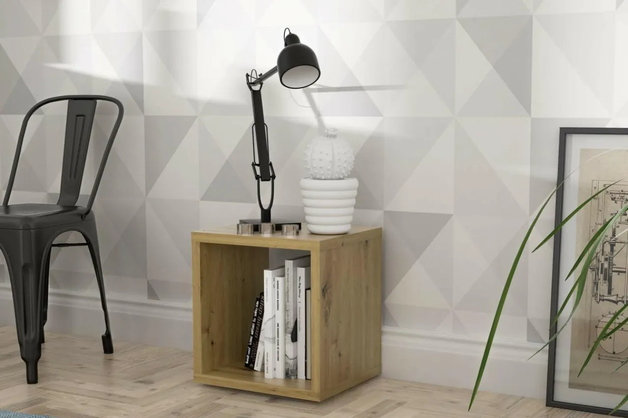 Regał MAURO wykorzystasz również jako szafkę nocną w minimalistycznych, loftowych lub industrialnych wnętrzach. Na blacie umieścisz lampkę nocną i odłożysz telefon.