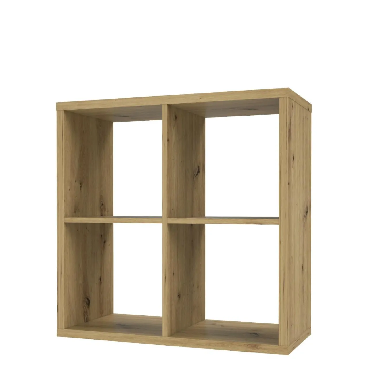 Regał MAURO to minimalistyczna bryła w ciepłym kolorze naturalnego drewna.