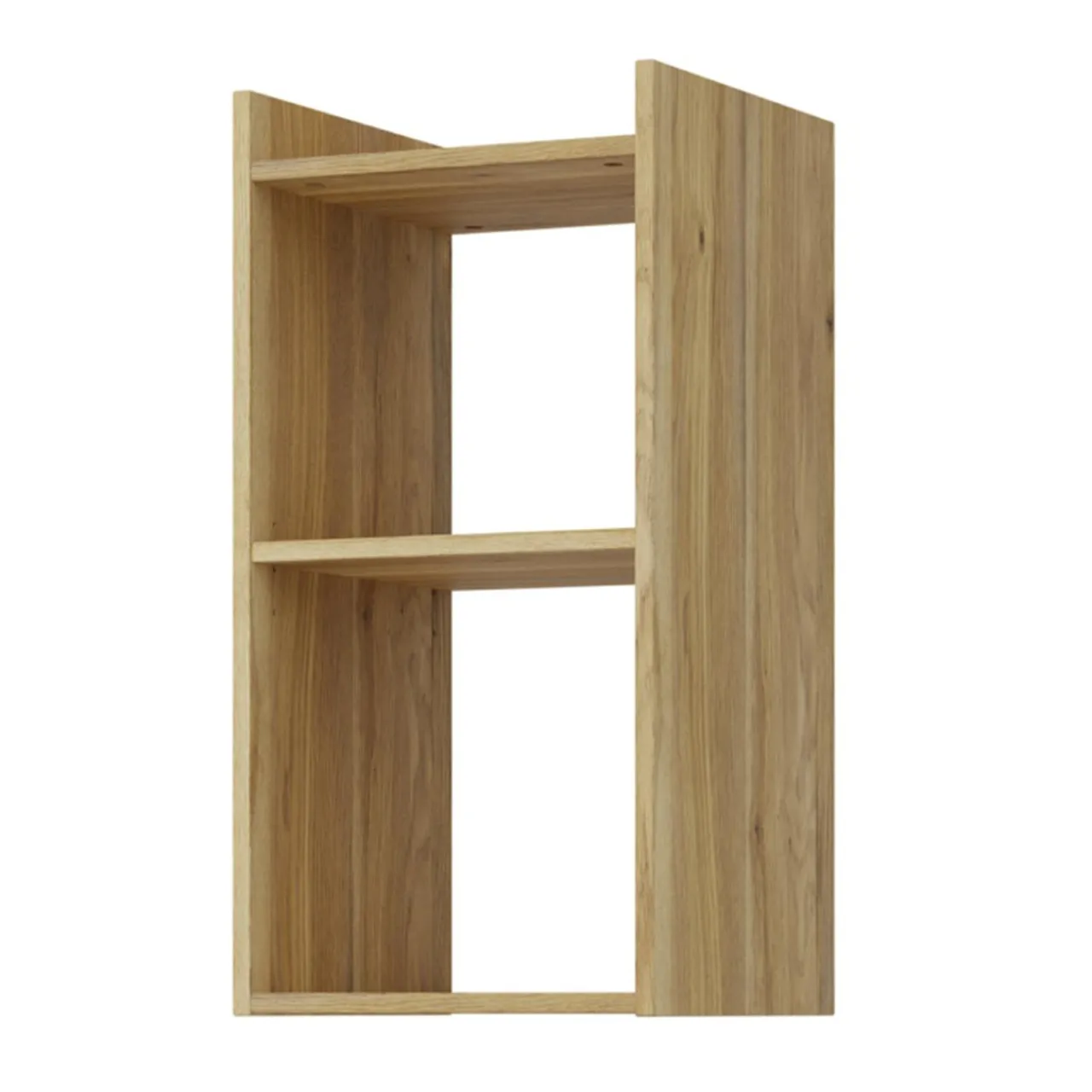 Mebel wykonano z płyty meblowej, którą pokrywa folia imitująca drewno dębowe.