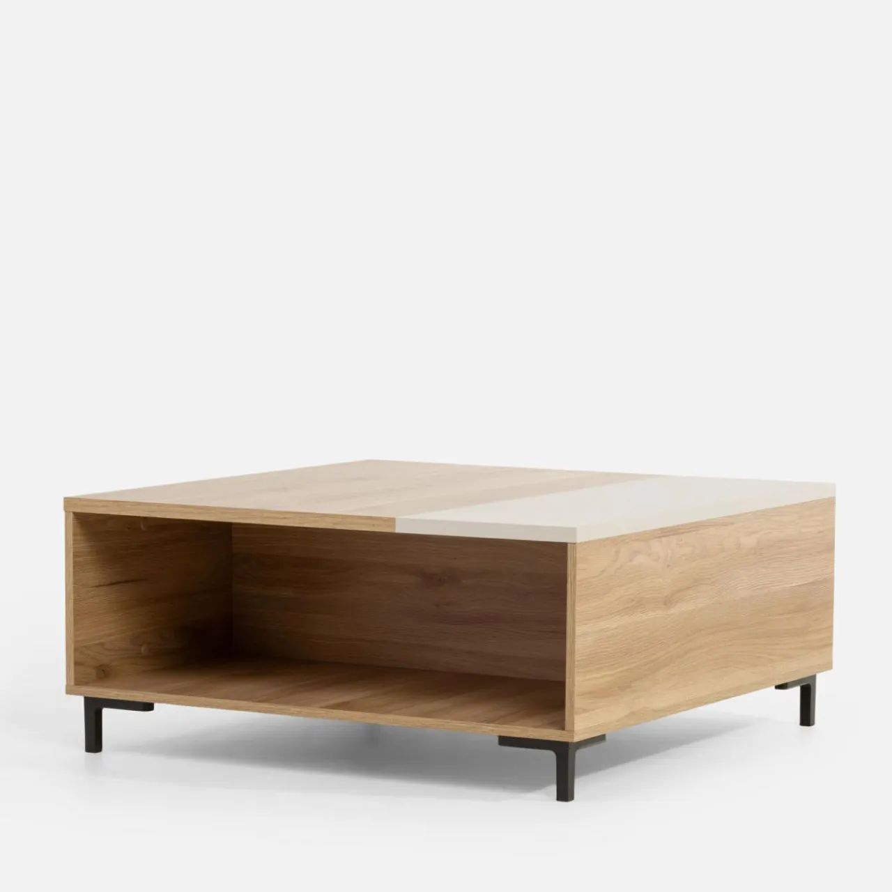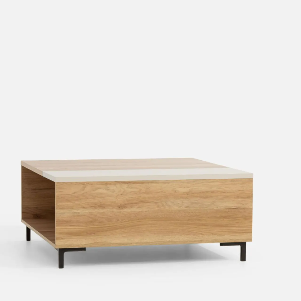 Stolik kawowy o kwadratowej konstrukcji pomieści szklanki wszystkich siedzących w salonie. Maksymalne obciążenie blatu 50 kg sprawi, że nie będziesz się obawiać o ciężkie dzbanki z napojami.