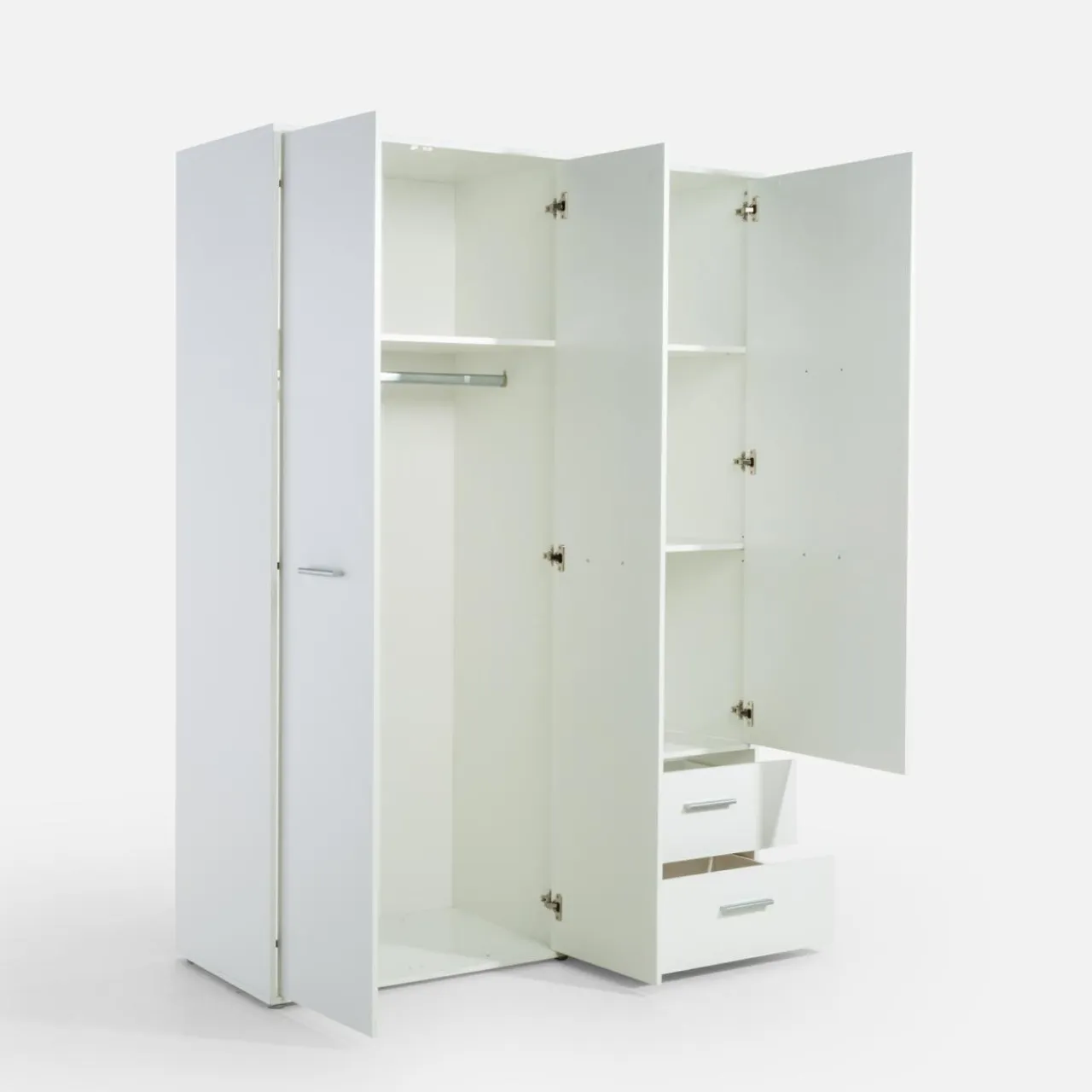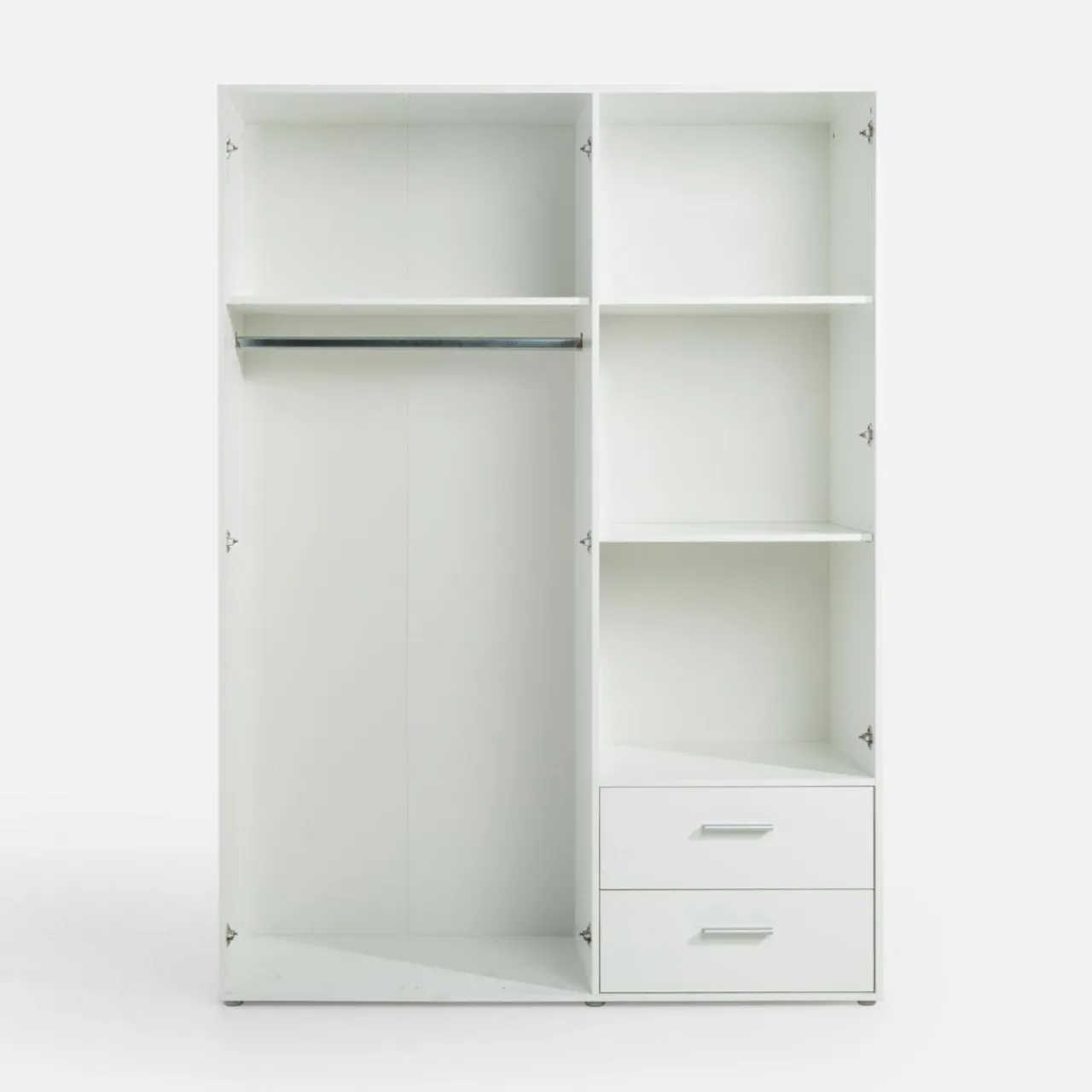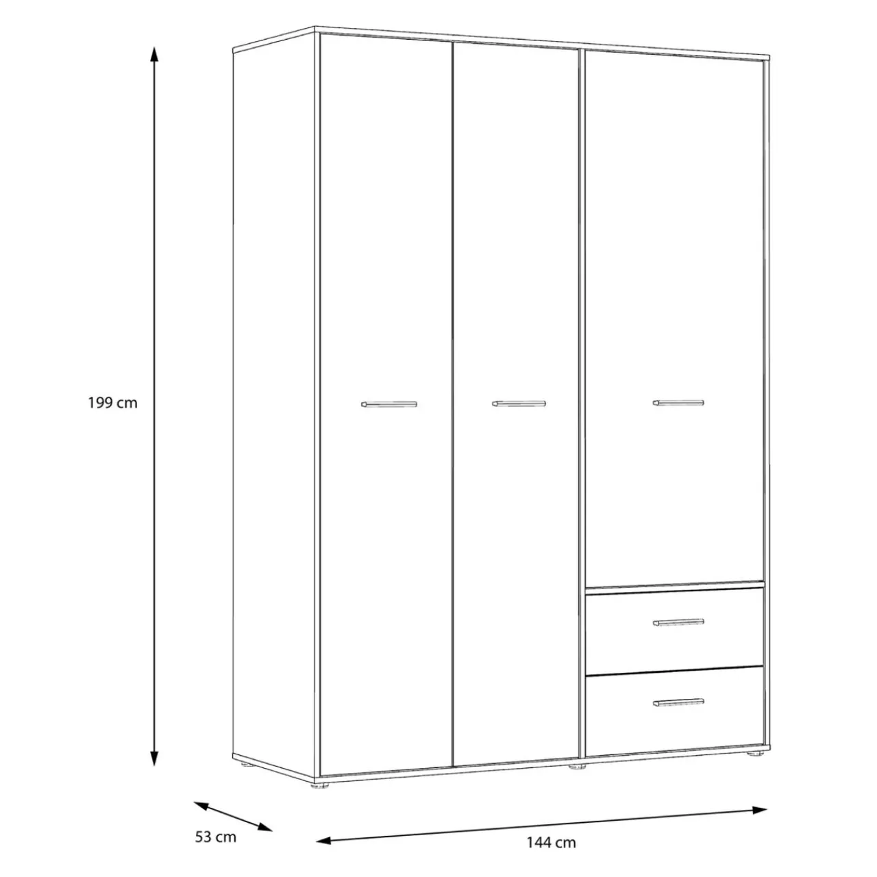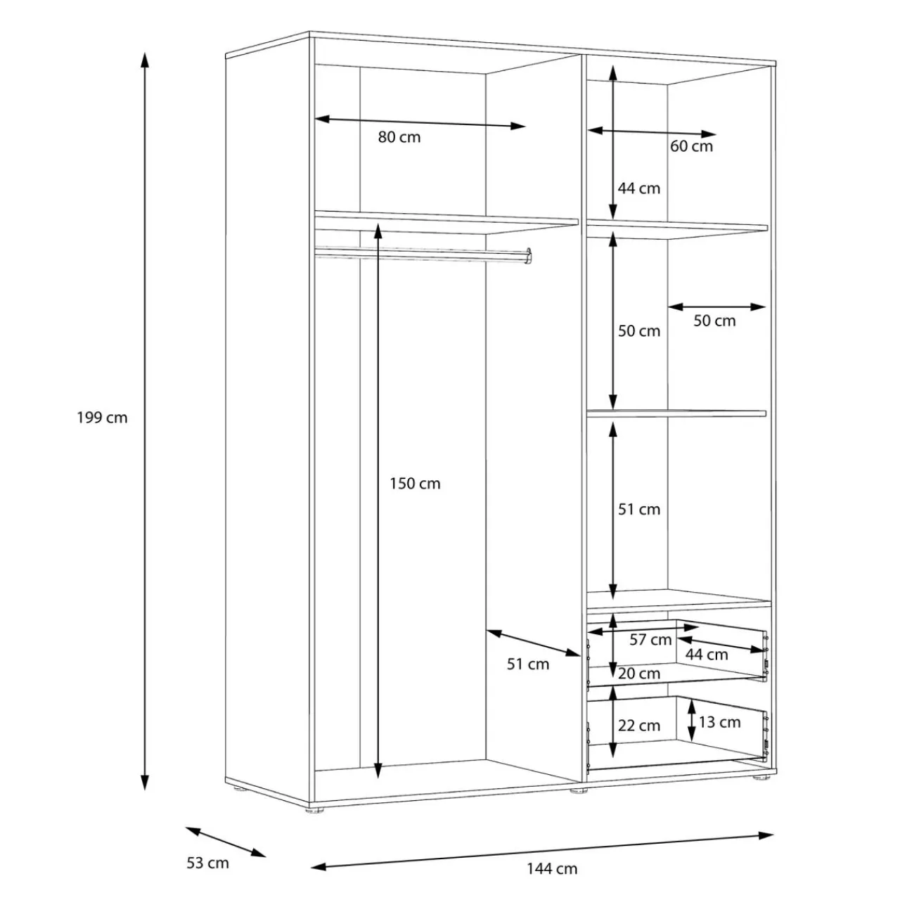 Szafa MINORU ma niecałe 145 cm szerokości więc możesz wpasować ją nawet w niewielki pokój. Zaprojektowano ją w taki sposób, by przechowywać w niej odzież zarówno na wieszakach, na półkach, jak i w szufladach.