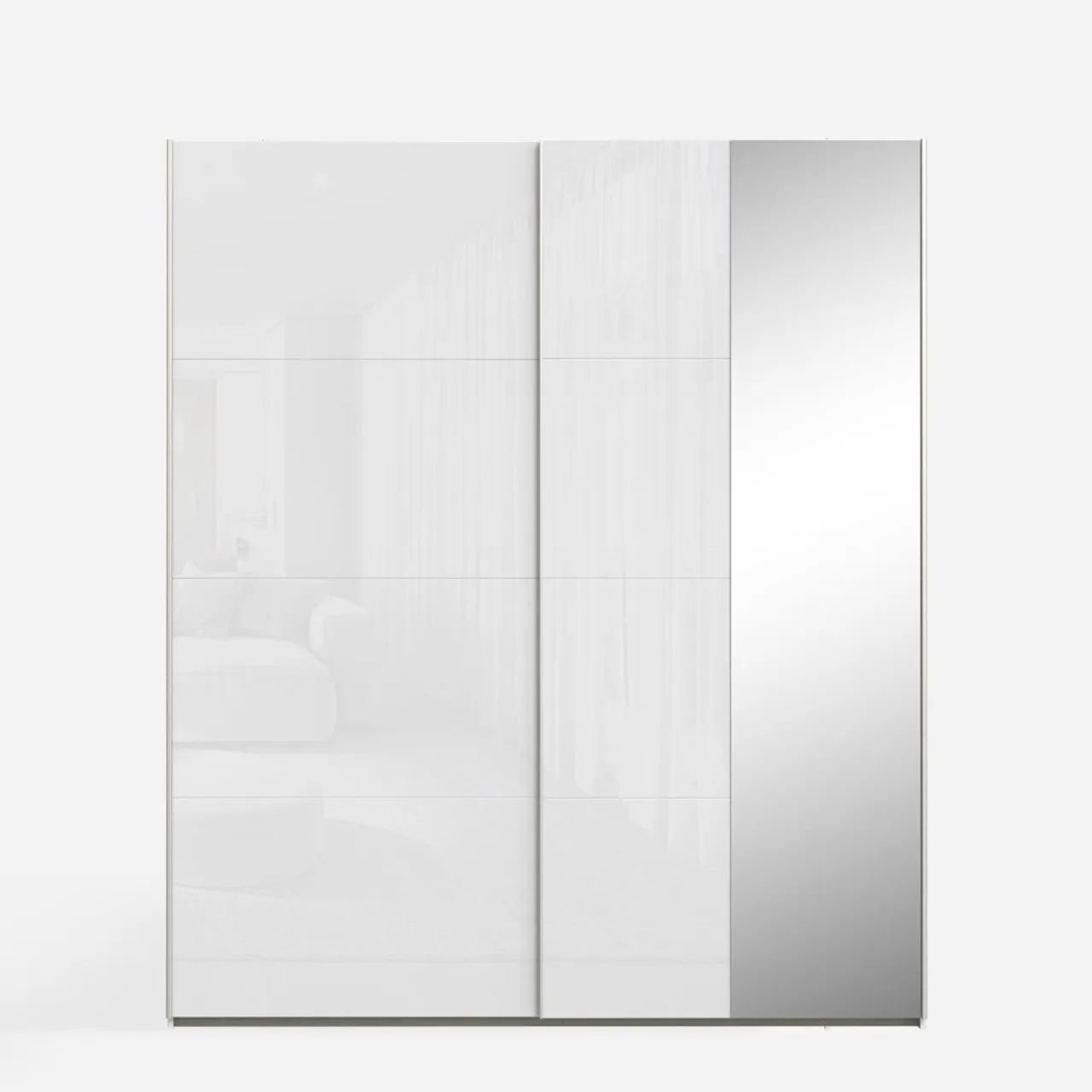 - Minimalistyczna bryła i różne warianty wykończenia — wybierz fronty w macie lub połysku, z lustrem lub bez.
