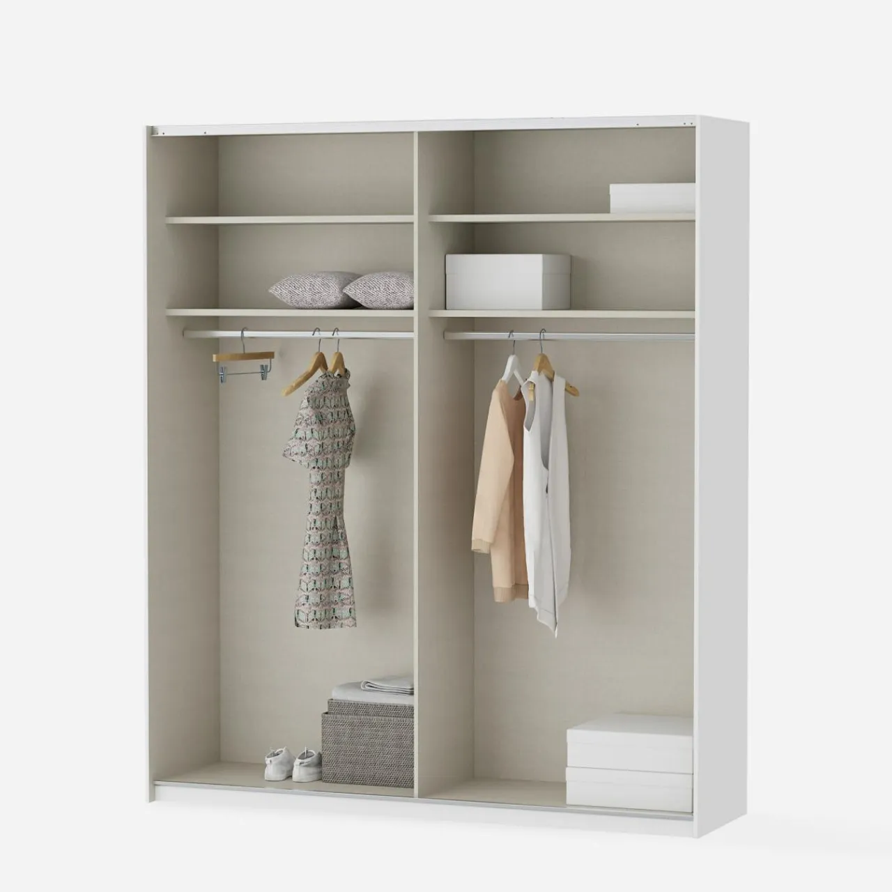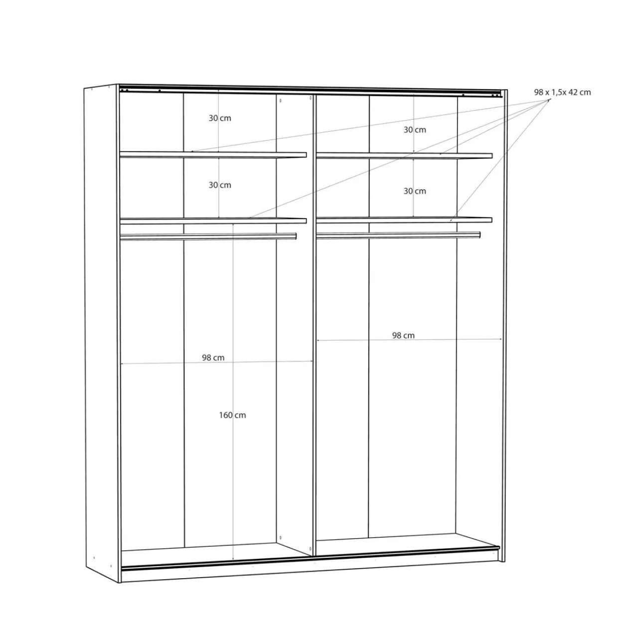 - Podzielona na dwie części — równomierne ułożenie półek i drążków w szafie umożliwia podzielenie wnętrza na różne sposoby; osobna część dla Ciebie i partnera lub dwójki rodzeństwa.