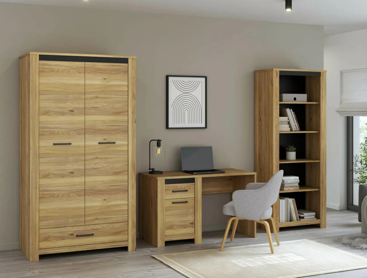 Jej proste, oszczędne wzornictwo wzbogacone kolorystyką jasnego i ciemnego drewna dębowego pozwala na dużą dowolność przy tworzeniu rozwiązań aranżacyjnych.