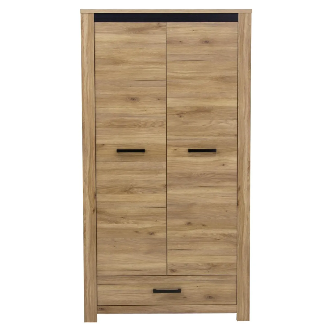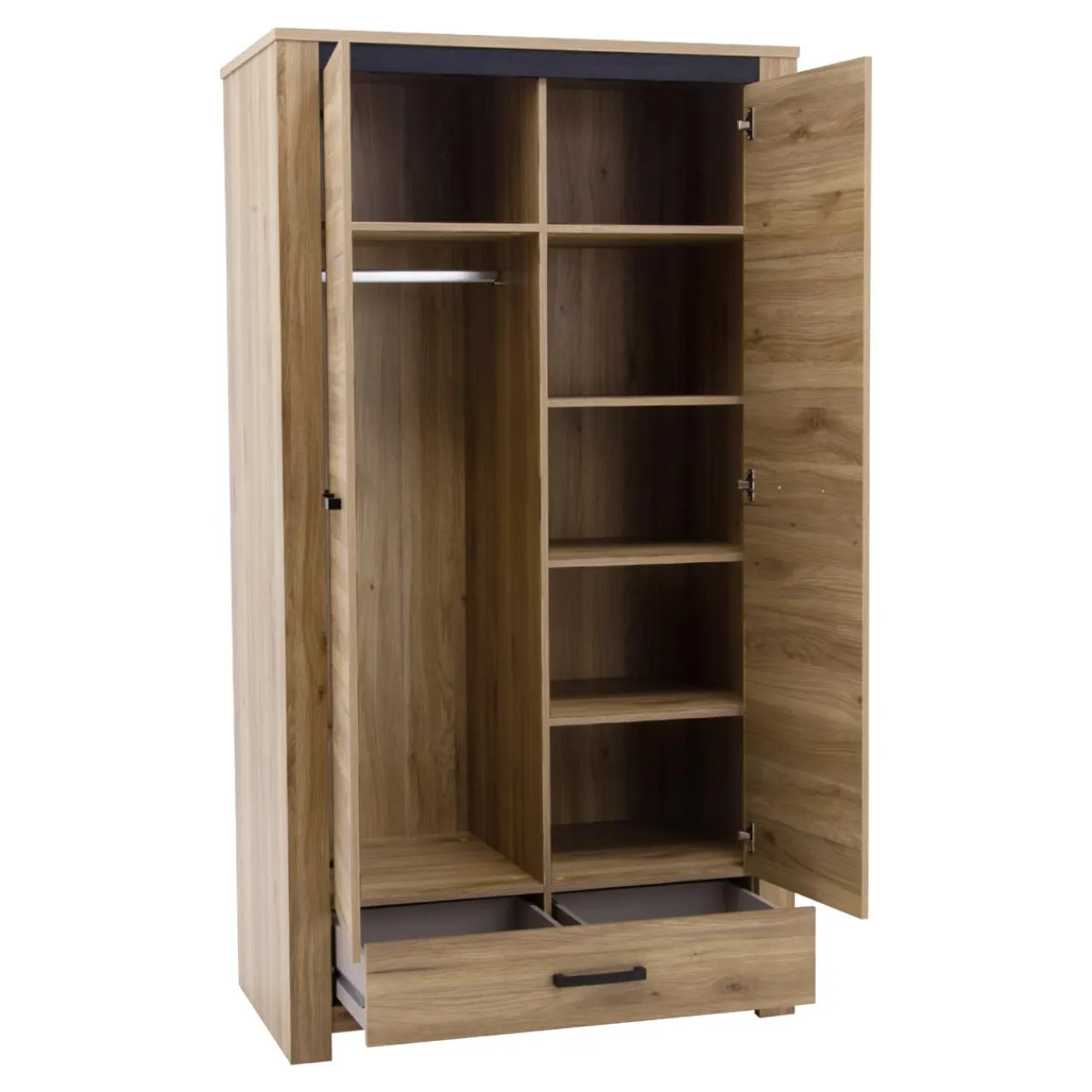 - Oprawa mebla to estetyczne połączenie 2 dekorów: jasnego dębu MAUVELLA oraz ciemnego dębu CABEZONE