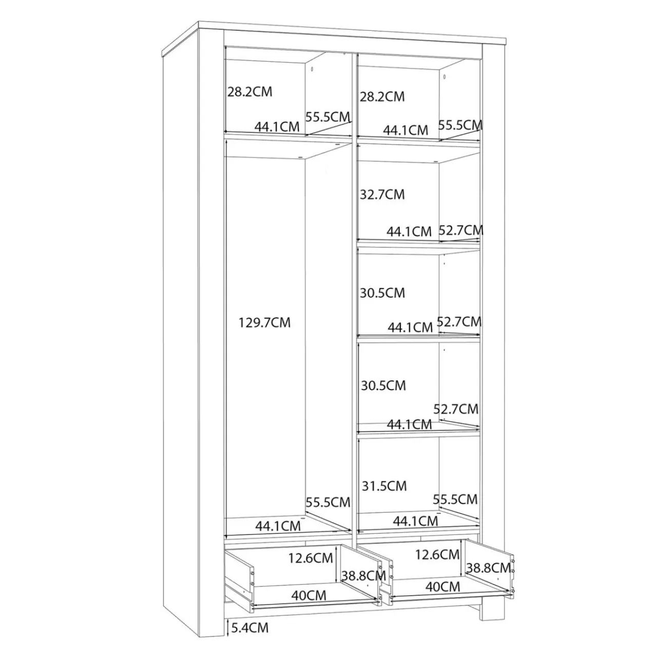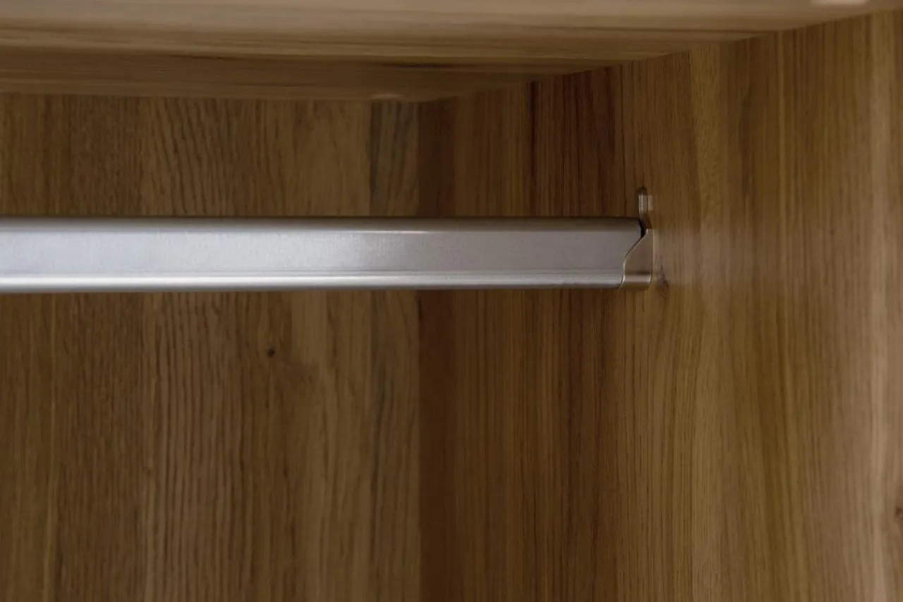 Wewnętrzne półki oraz drążek na wieszaki pomogą Ci zorganizować przestrzeń dla swojej garderoby.