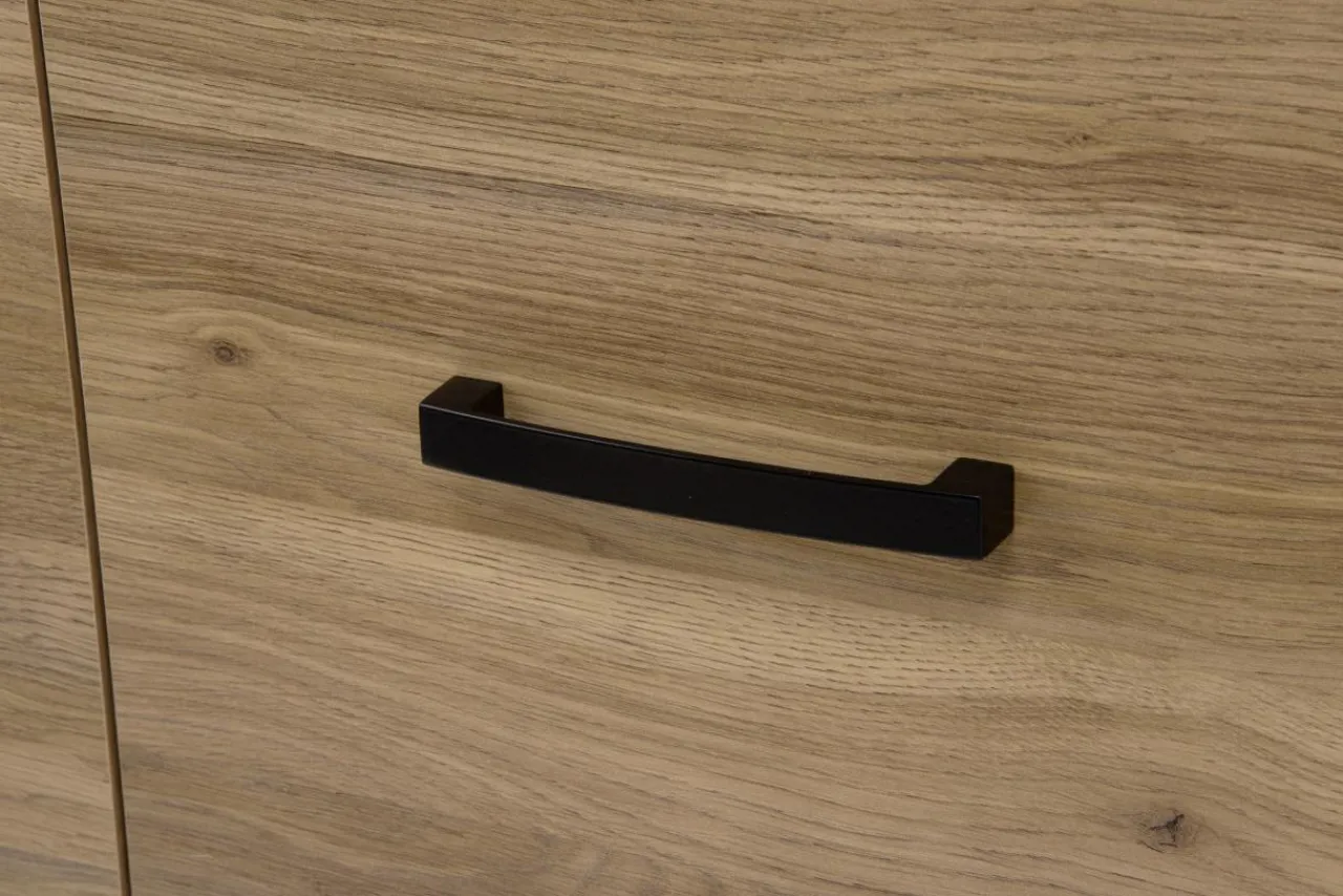 - Szafa została wyposażona w czarne uchwyty z tworzywa o prostym, nowoczesnym kształcie