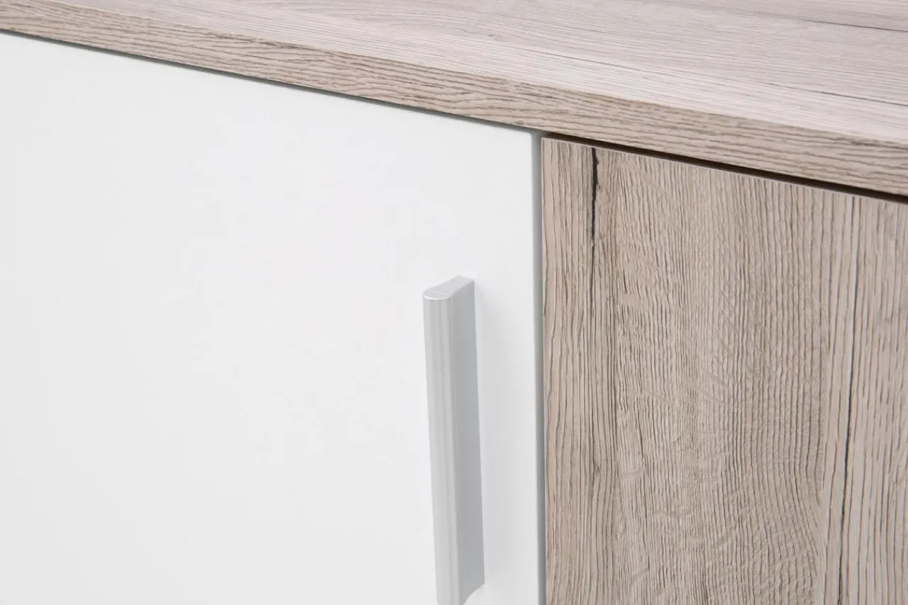 - Wykończenie w ponadczasowej bieli sprawia, że z łatwością dopasujesz szafkę do własnej aranżacji i innych mebli w mieszkaniu.