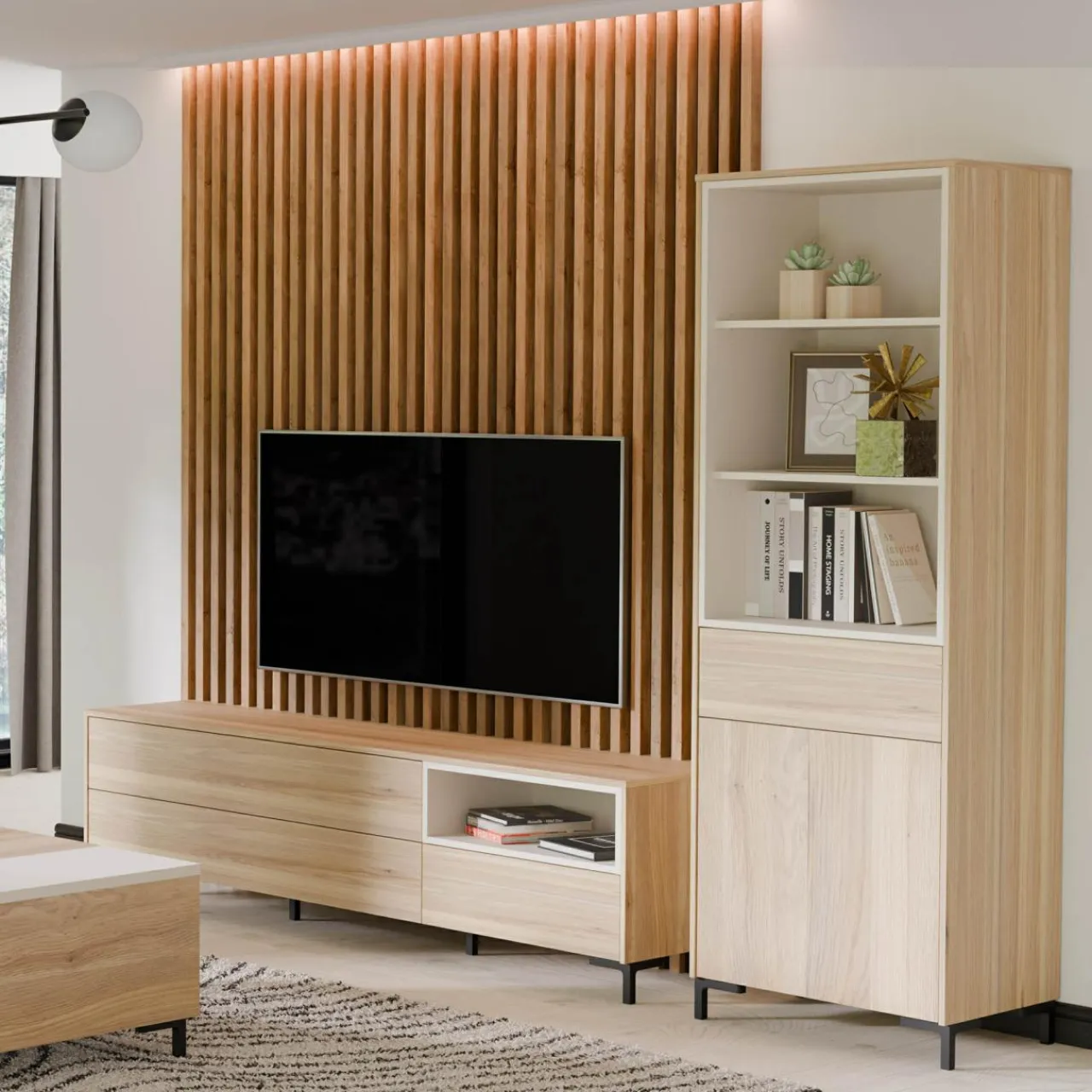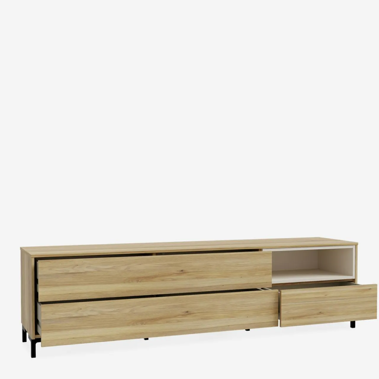 - W otwartej wnęce postaw dekoder, router czy odtwarzacz DVD. Kable pozostaną ukryte dzięki otworowi w tylnej zabudowie.