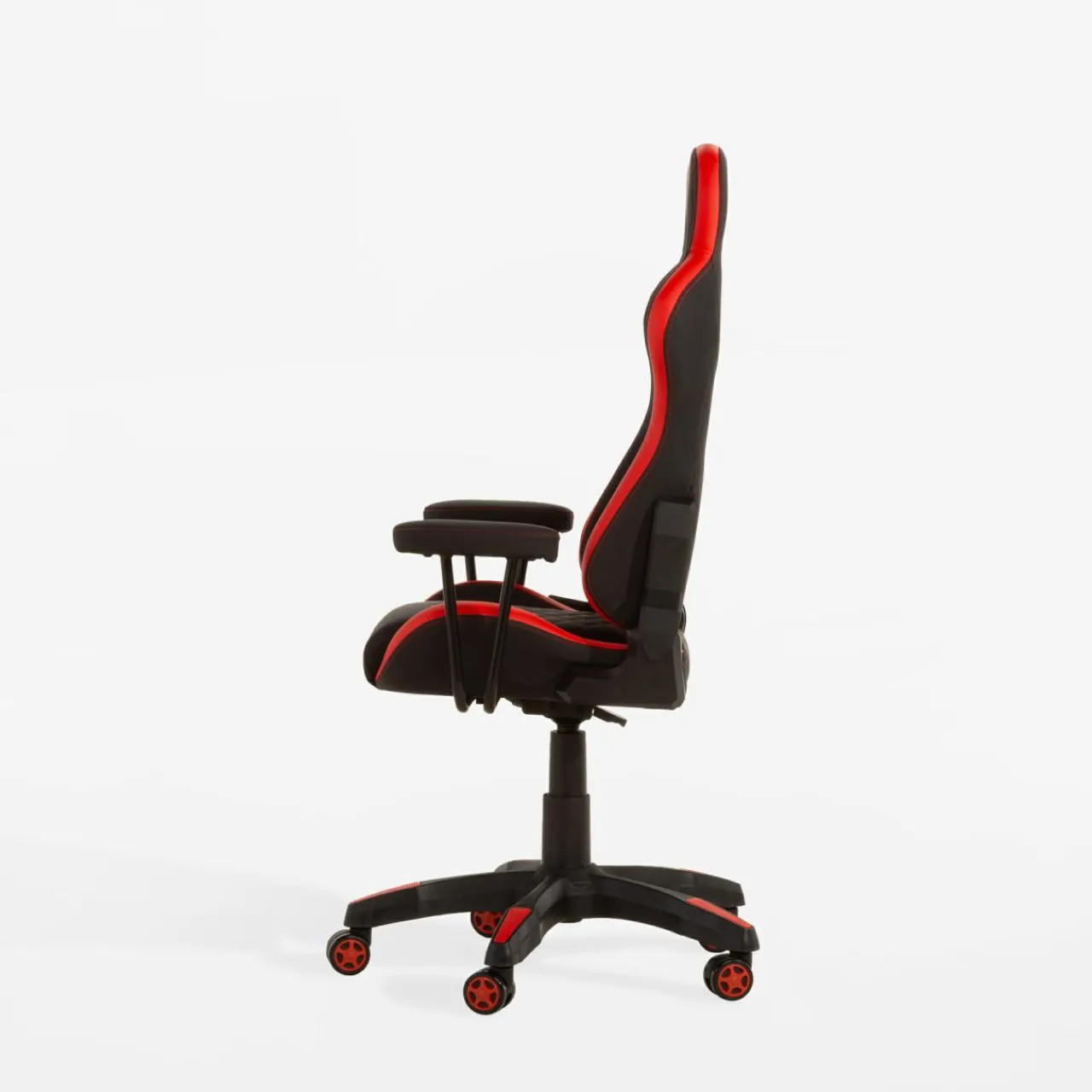 Połączenie czerwieni i czerni podkreśla sportowy charakter fotela.