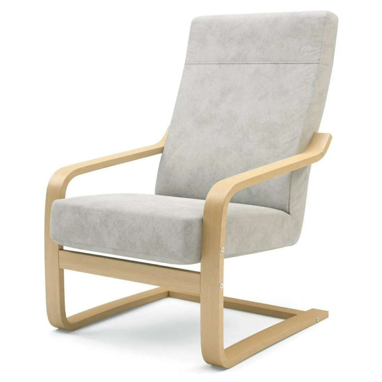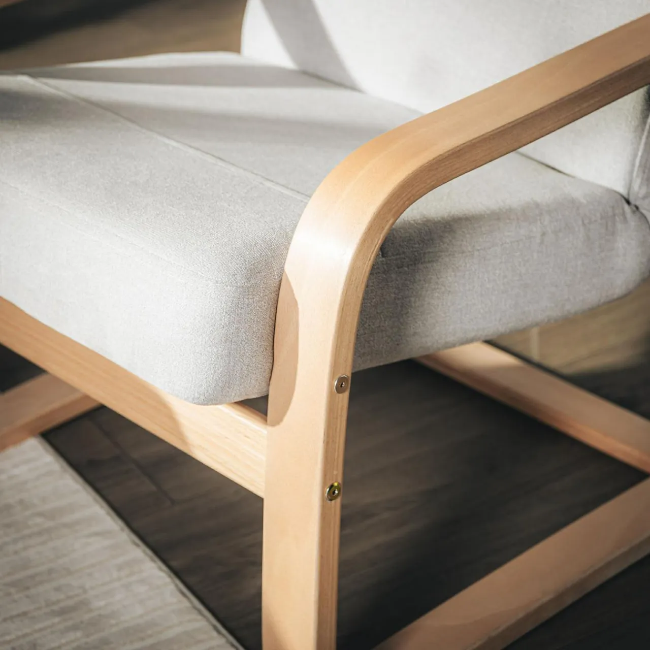 Naturalne drewno bukowe jest idealne do budowy tego typu stelaża, jego odpowiednia elastyczność zapewnia trwałość i komfort mebla, dodatkowo zwiększając jego walory wizualne. Siedzisko i oparcie fotela przeszyto w tkaninie ALFA, o przyjemnej w dotyku fakturze.