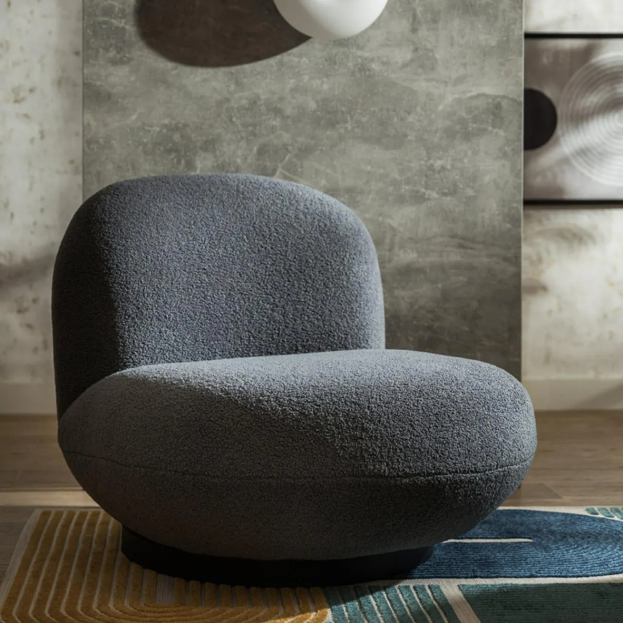 - Przytulna, pluszowa tkanina typu boucle sprawi, że trudno będzie się oderwać od fotela.